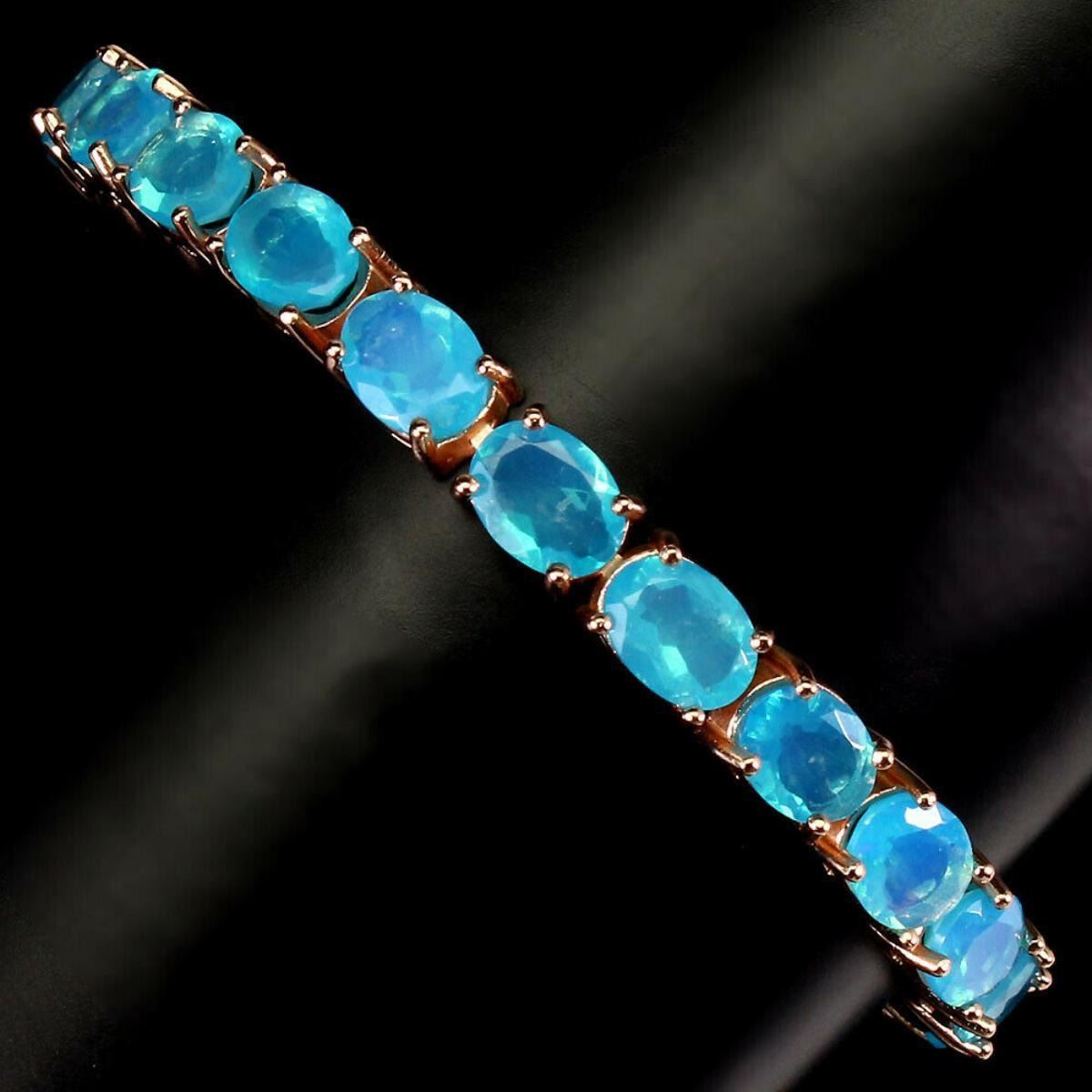 925 STERLING SILVER;PLATE-14K ROSE GOLD;LENGTH -(INCHES)7;MAIN STONE-BLUE FIRE OPAL;TOTAL WEIGHT-17.75 GRAM (TOTAL WEIGHT OF SILVER + STONE)DIMENSION* STONE 8.0 X 6.0 MM. * FACE BRACELET 183.0 X 6.0 MM.MAIN STONE SHAPE-OVAL CUT;MAIN STONE COLOR-TOP RICH BLUE;CLARITY/GRADE-IF;LUSTER-PRECIOUS;ORIGIN-ETHIOPIA;HARDNESS-5.5 - 6.5;