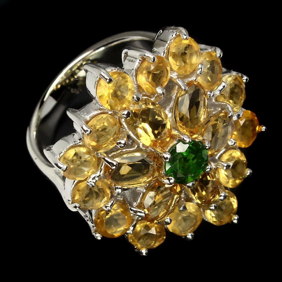 925 STERLING SILVER;PLATE14K WHITE GOLD;RING SIZE-7.5(resizable)MAIN STONE-CITRINE;OTHER GEMS-CHROME DIOPSIDE;TOTAL WEIGHT53.30 CT (TOTAL WEIGHT OF SILVER + STONE)DIMENSION* STONE 4.0 TO 6.0 X 4.0 MM. * RING SIZE 7.5 * FACE RING 26.0 X 23.0 MM.;MAIN STONE SHAPE-OVAL CUT;MAIN STONE COLOR-TOP RICH YELLOW;CLARITY/GRADE-IF TO VVS;TREATMENT-UNHEATED;ORIGINBRAZIL;HARDNESS7;