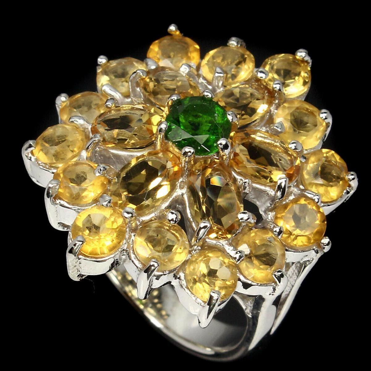 925 STERLING SILVER;PLATE14K WHITE GOLD;RING SIZE-7.5(resizable)MAIN STONE-CITRINE;OTHER GEMS-CHROME DIOPSIDE;TOTAL WEIGHT53.30 CT (TOTAL WEIGHT OF SILVER + STONE)DIMENSION* STONE 4.0 TO 6.0 X 4.0 MM. * RING SIZE 7.5 * FACE RING 26.0 X 23.0 MM.;MAIN STONE SHAPE-OVAL CUT;MAIN STONE COLOR-TOP RICH YELLOW;CLARITY/GRADE-IF TO VVS;TREATMENT-UNHEATED;ORIGINBRAZIL;HARDNESS7;