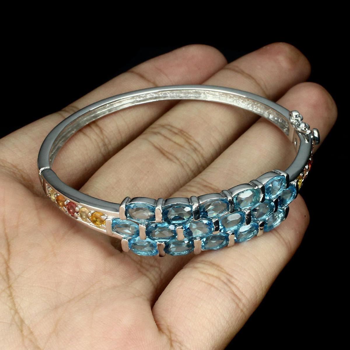 925 STERLING SILVER.....PLATE....14K WHITE GOLD...MAIN STONESWISS BLUE TOPAZ.OTHER GEMSSAPPHIRE...TOTAL WEIGHT75.99 CT (TOTAL WEIGHT OF SILVER + STONE)DIMENSION* STONE 3.0 TO 7.0 X 5.0 MM. * DIAMETER 2.0 X 1.8 INCHES. * FACE BANGLE 55.0 X 12.0 MM.MAIN STONE SHAPEOVAL CUTMAIN STONE COLORTOP SWISS BLUECLARITY/GRADEIF TO VVSLUSTERPRECIOUSTREATMENTHEATEDORIGINAFRICAHARDNESS8.0 - 9.0