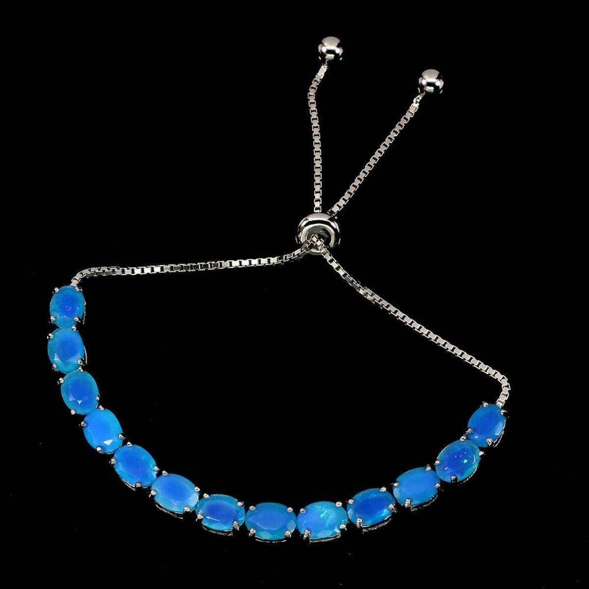 925 STERLING SILVER;PLATE...14K WHITE GOLD;LENGTH (INCHES)-12;MAIN STONE-BLUE FIRE OPAL;OTHER GEMS-CUBIC ZIRCONIA;TOTAL WEIGHT-41.29 CT (TOTAL WEIGHT OF SILVER + STONE)DIMENSION* STONE 7.0 X 5.0 MM. * FACE BRACELET 100.0 X 5.0 MM.;MAIN STONE SHAPE-OVAL CUT;MAIN STONE COLOR-TOP RICH BLUE;CLARITY/GRADE-IF TO VVS;LUSTER-RAVISHING;ORIGIN-ETHIOPIA;HARDNESS-5.5 - 6.5;
