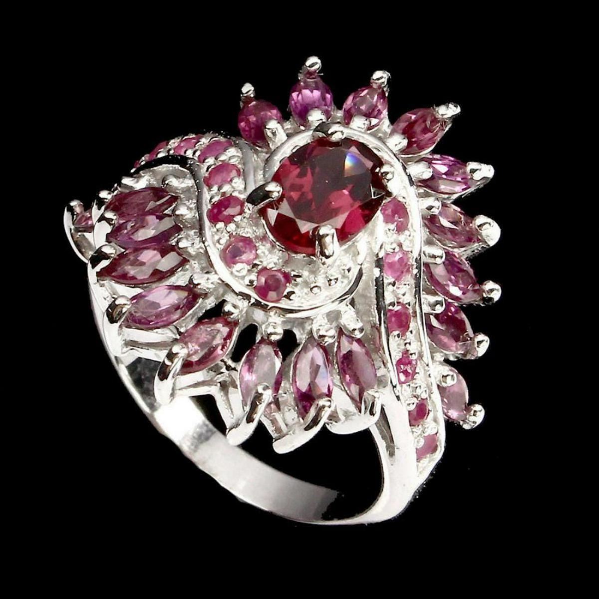 925 STERLING SILVER;PLATE14K WHITE GOLD;RING SIZE7.5;MAIN STONERHODOLITE GARNET;OTHER GEMSRUBY;TOTAL WEIGHT27.35 GRAM (TOTAL WEIGHT OF SILVER + STONE)DIMENSION* STONE 1.5 TO 7.0 X 5.0 MM. * FACE RING 22.0 X 20.0 MM.;MAIN STONE SHAPEOVAL CUTMAIN STONE COLORTOP RICH PINK RASPBERRYCLARITY/GRADEIFLUSTERGORGEOUS;TREATMENTUNHEATEDORIGINAFRICA;HARDNESS7.0 - 9.0;