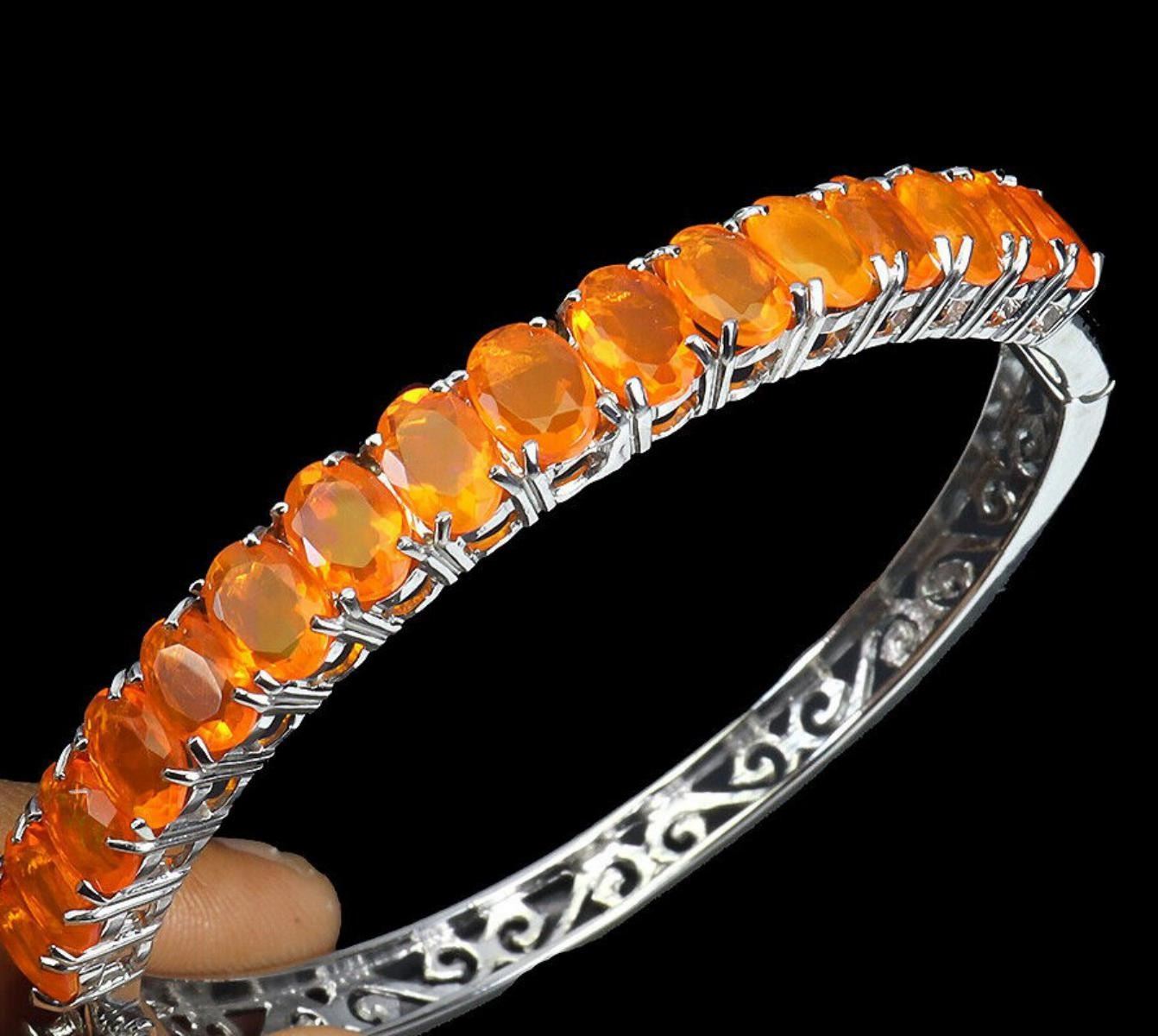 925 STERLING SILVER;PLATE-14K WHITE GOLD;LENGTH (INCHES)2;MAIN STONE-ORANGE OPALTOTAL WEIGHT-16.29 GRAM (TOTAL WEIGHT OF SILVER + STONE)DIMENSION-* STONE 7.0 X 5.0 MM.;* DIAMETER -2.0 INCHES.;* FACE BANGLE -63.0 X 7.0 MM.;MAIN STONE SHAPE-OVAL CUT;MAIN STONE COLOR- RICH ORANGE;TREATMENT-Yes;ORIGIN-MEXICO;HARDNESS-5.5 - 6.5;