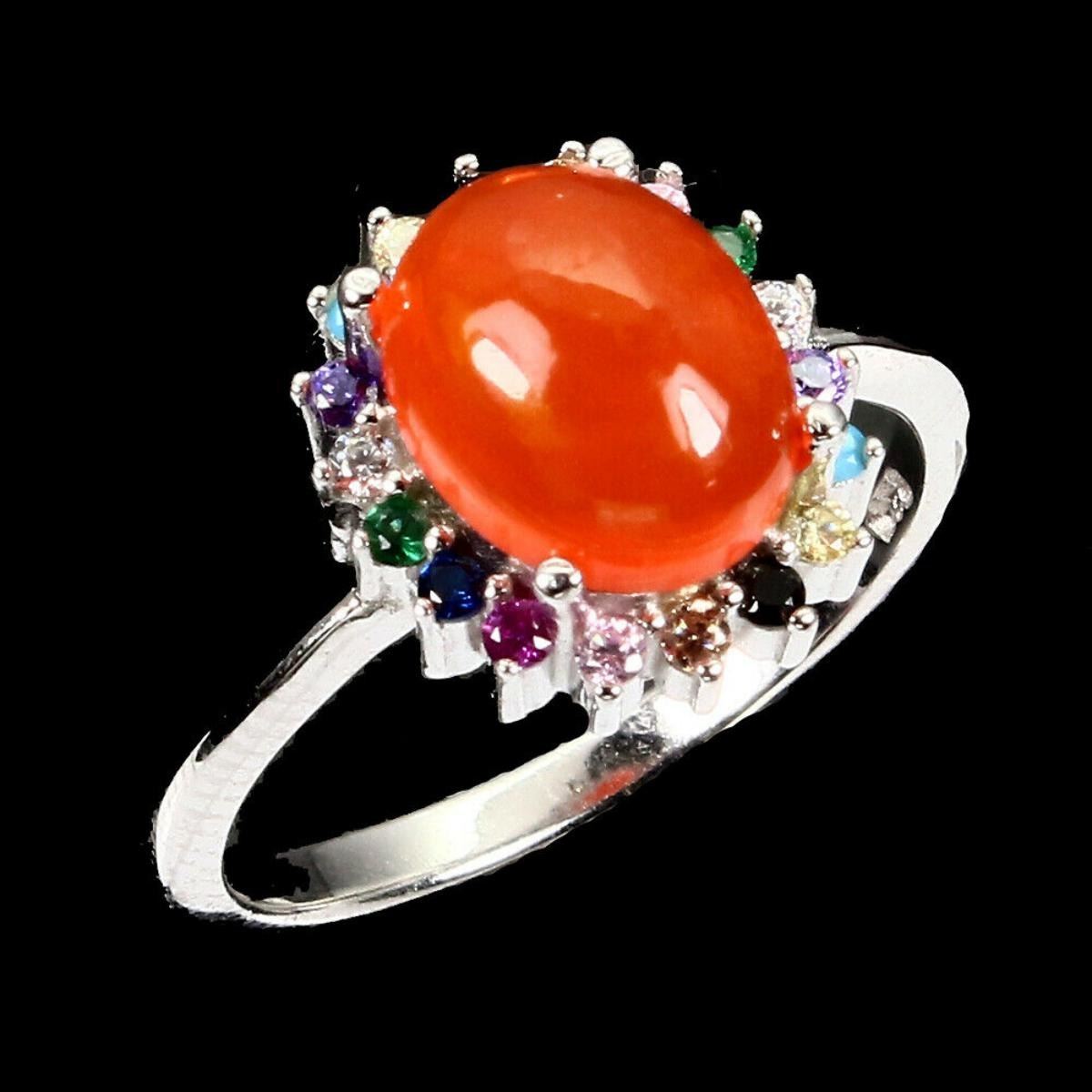 925 STERLING SILVER;PLATE-14K WHITE GOLD;RING SIZE/LENGTH (resizeable)8;MAIN STONE-ORANGE FIRE OPAL;TOTAL WEIGHT-3.13 GRAM (TOTAL WEIGHT OF SILVER + STONE)DIMENSION-* STONE 1.5 TO 10.0 X 8.0 MM. * CZ 1.5 MM. * RING SIZE 8.0 * FACE RING -14.0 X 12.0 MM.;MAIN STONE SHAPE-OVAL CABOCHON;MAIN STONE COLOR-TOP RICH ORANGE;ORIGIN-ETHIOPIA;HARDNESS-5;
