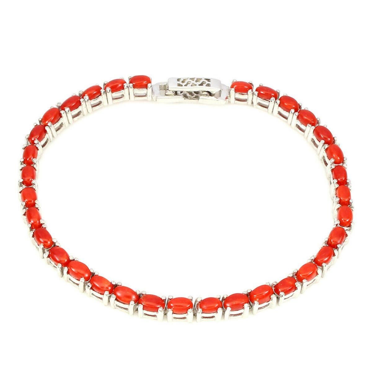 925 STERLING SILVER;PLATE14K WHITE GOLD;RING SIZE/LENGTH (INCHES)7.5;MAIN STONE-CORAL;TOTAL WEIGHT-13.74 GRAM (TOTAL WEIGHT OF SILVER + STONE)DIMENSION* STONE 5.0 X 3.0 MM. * FACE BRACELET 175.0 X 3.0 MM.;MAIN STONE SHAPE-OVAL CABOCHON;MAIN STONE COLOR-TOP RICH ORANGE;; Completey Untreated;ORIGIN- ItalyHARDNESS-3