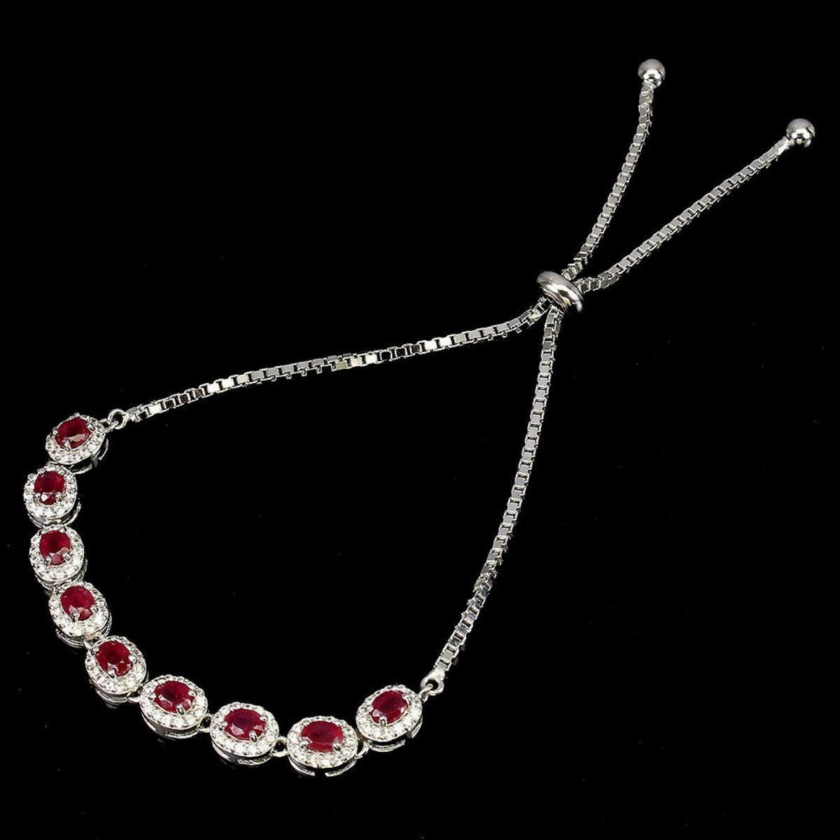 925 STERLING SILVER;PLATE-14K WHITE GOLD;LENGTH (INCHES)10;MAIN STONE-RUBY;TOTAL WEIGHT-7.47 GRAM (TOTAL WEIGHT OF SILVER + STONE)DIMENSION-* STONE 4.0 X 3.0 MM. * CZ 1.0 MM. * TOTAL LENGTH 10.0 INCHES. * FACE BRACELET 70.0 X 6.0 MM.;MAIN STONE SHAPE-OVAL CUT;MAIN STONE COLOR-TOP BLOOD RED;TREATMENT-- Yes;ORIGIN-MADAGASCAR;HARDNESS-9;