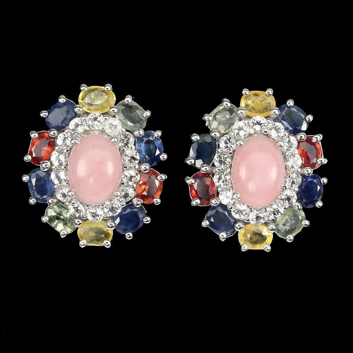 925 STERLING SILVER;PLATE-14K WHITE GOLD;MAIN STONE-PINK OPAL;OTHER GEMS-SAPPHIRE, WHITE TOPAZ;TOTAL WEIGHT-5.78 GRAM (TOTAL WEIGHT OF SILVER + STONE)DIMENSION-* STONE 2.0 TO 8.0 X 6.0 MM.;* FACE EARRINGS- 19.0 X 17.0 MM.;MAIN STONE SHAPE-OVAL CABOCHON;MAIN STONE COLOR- NICE PINK;TREATMENT-UNHEATED;ORIGIN-ETHIOPIA;HARDNESS-5.5 - 6.5;