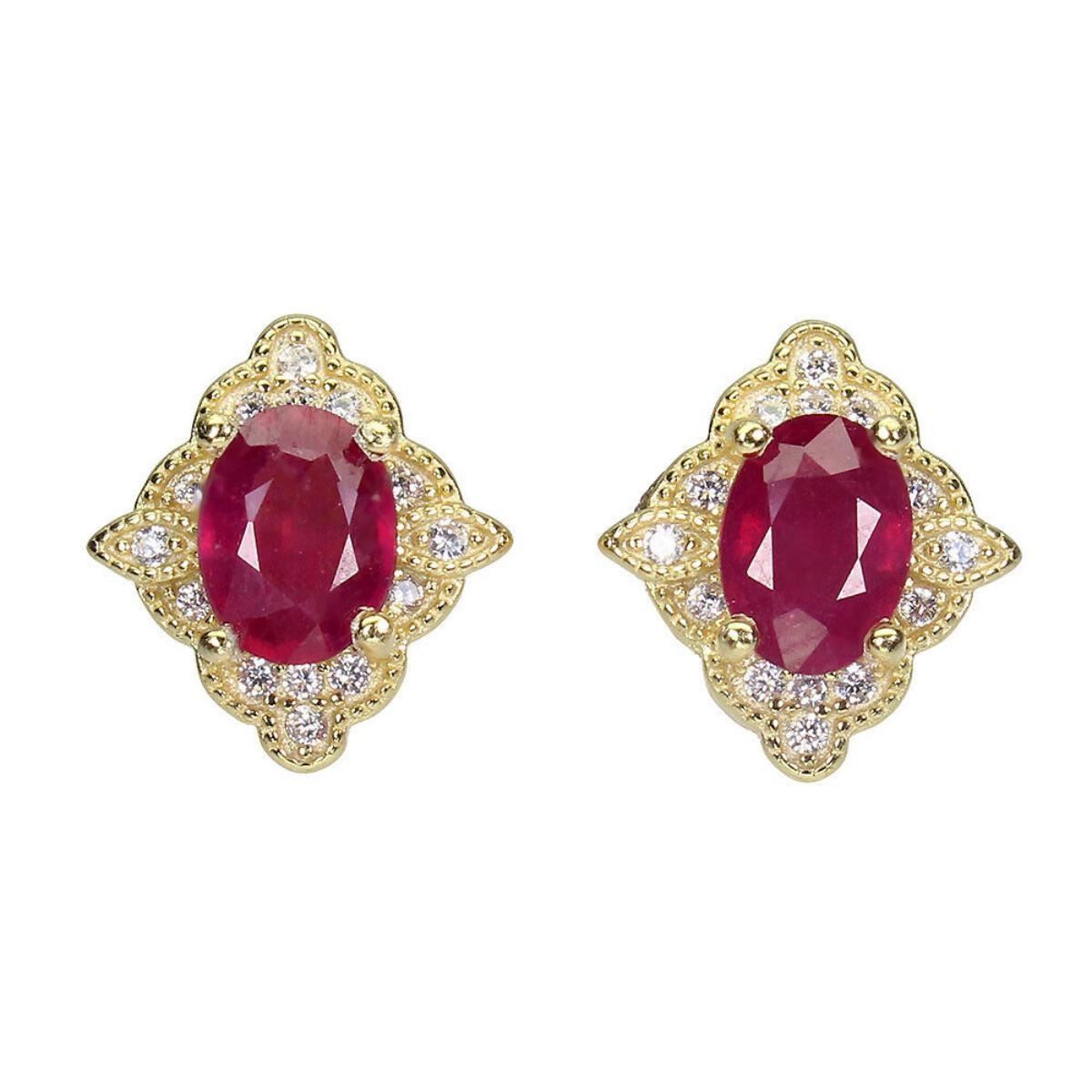 925 STERLING SILVER;PLATE-14K YELLOW GOLD;MAIN STONE-RUBY;TOTAL WEIGHT-3.46 GRAM (TOTAL WEIGHT OF SILVER + STONE)DIMENSION-* STONE 7.0 X 5.0 MM.;* FACE EARRINGS- 12.0 X 11.0 MM.;MAIN STONE SHAPE-OVAL CUT;MAIN STONE COLOR-BLOOD RED;TREATMENT-Yes;ORIGIN-MADAGASCAR;HARDNESS-9.0;