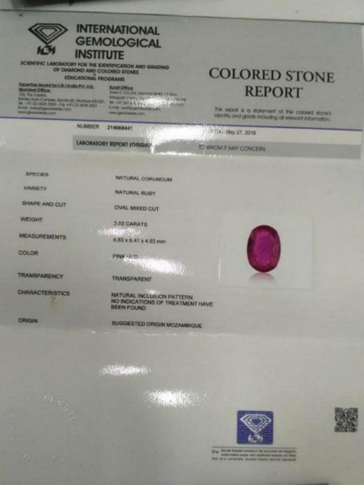 Natural Oval Ruby 3.02 Cts - No treatment in any way... eye clean....completely Untreated - Certified by IGI...Origin - Mozambique,