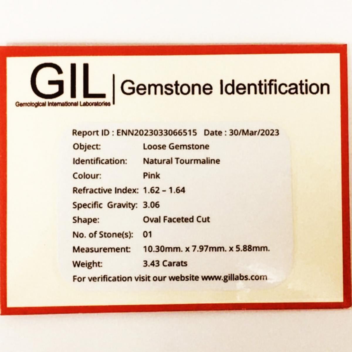 Natural Tourmaline; WEIGHT : 3.43 cts; SHAPE : Oval; SIZE ( L x W x D ) : 10.30 x 7.97 x 5.88 mm; QUANTITY : 1 piece; COLOR : Padparadscha Pink; AAA Color ; CLARITY : Flawless-VVS ; AAA Grade; ORIGIN : Mozambique; HARDNESS : 7; LUSTER : AAA Fire!!! TREATMENT : UNHeated 100% Natural