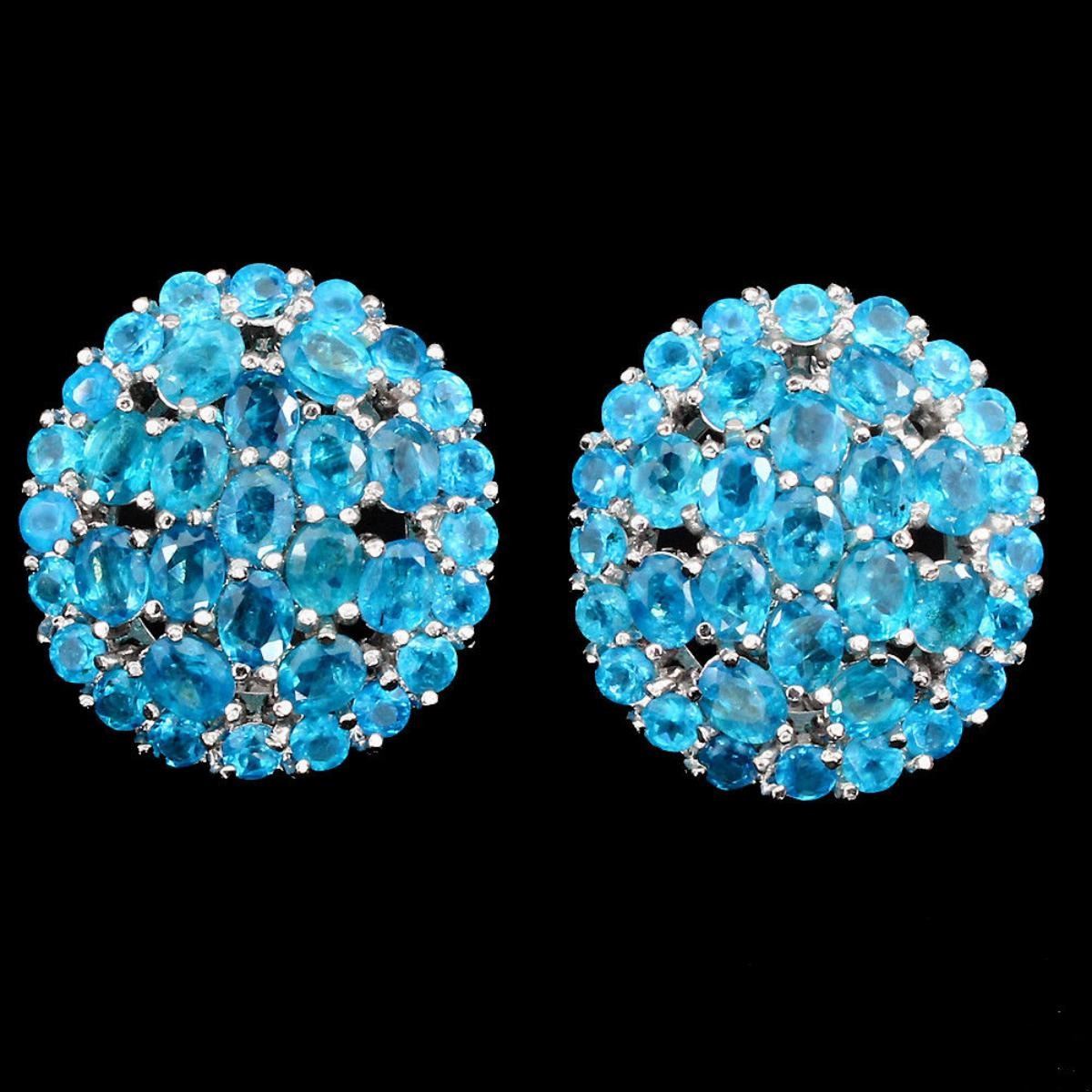 925 STERLING SILVER PLATE 14K WHITE GOLD RING SIZE/LENGTH (INCHES) MAIN STONE -APATITE; origin - Brazil; TOTAL WEIGHT 54.95 CT (TOTAL WEIGHT OF SILVER + STONE) DIMENSION * STONE 2.0 TO 4.0 X 3.0 MM. * FACE EARRINGS 22.0 X 20.0 MM. MAIN STONE SHAPE OVAL CUT MAIN STONE COLOR TOP PARAIBA BLUE CLARITY/GRADE IF TO VVS LUSTER EXQUISITE HARDNESS 5.0