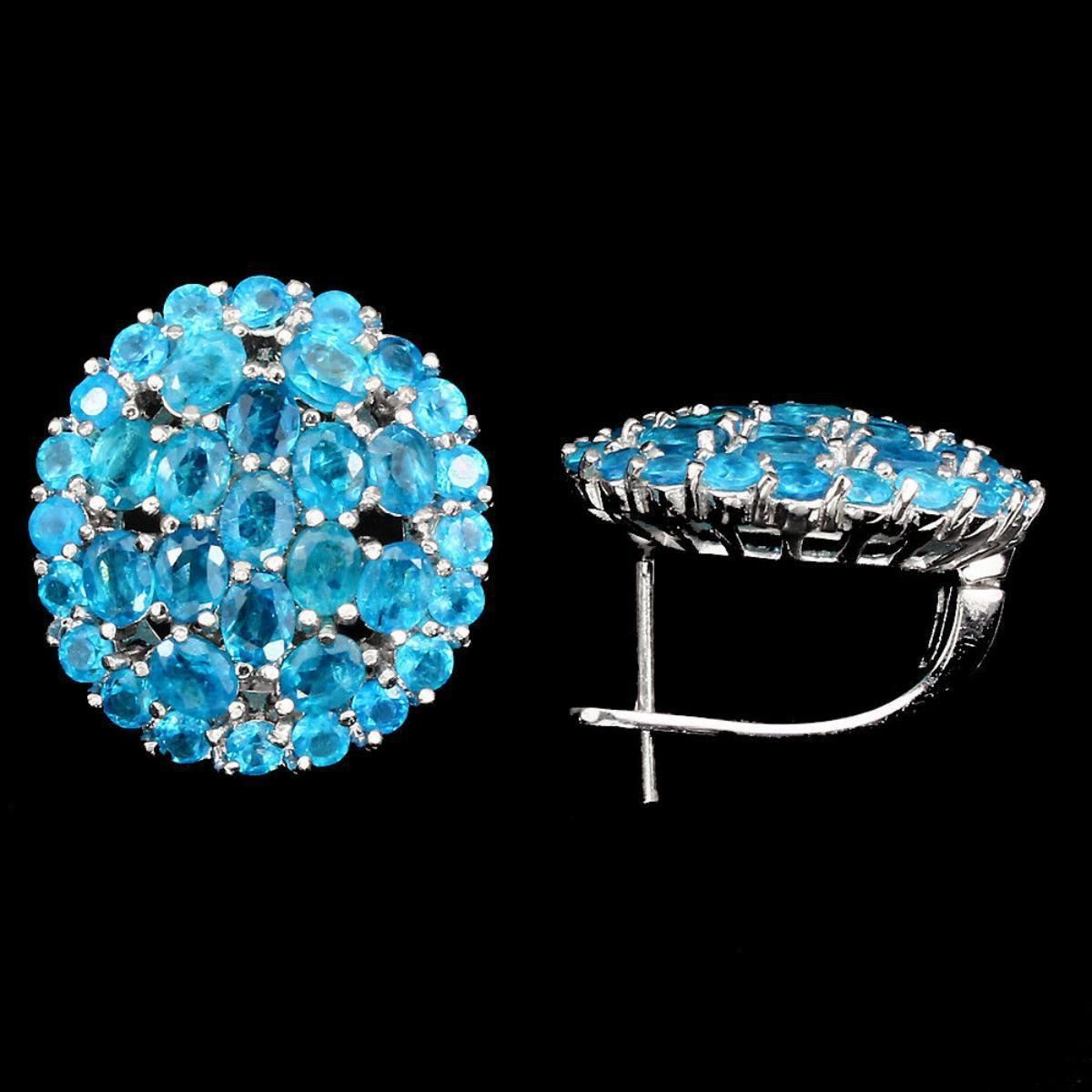925 STERLING SILVER PLATE 14K WHITE GOLD RING SIZE/LENGTH (INCHES) MAIN STONE -APATITE; origin - Brazil; TOTAL WEIGHT 54.95 CT (TOTAL WEIGHT OF SILVER + STONE) DIMENSION * STONE 2.0 TO 4.0 X 3.0 MM. * FACE EARRINGS 22.0 X 20.0 MM. MAIN STONE SHAPE OVAL CUT MAIN STONE COLOR TOP PARAIBA BLUE CLARITY/GRADE IF TO VVS LUSTER EXQUISITE HARDNESS 5.0