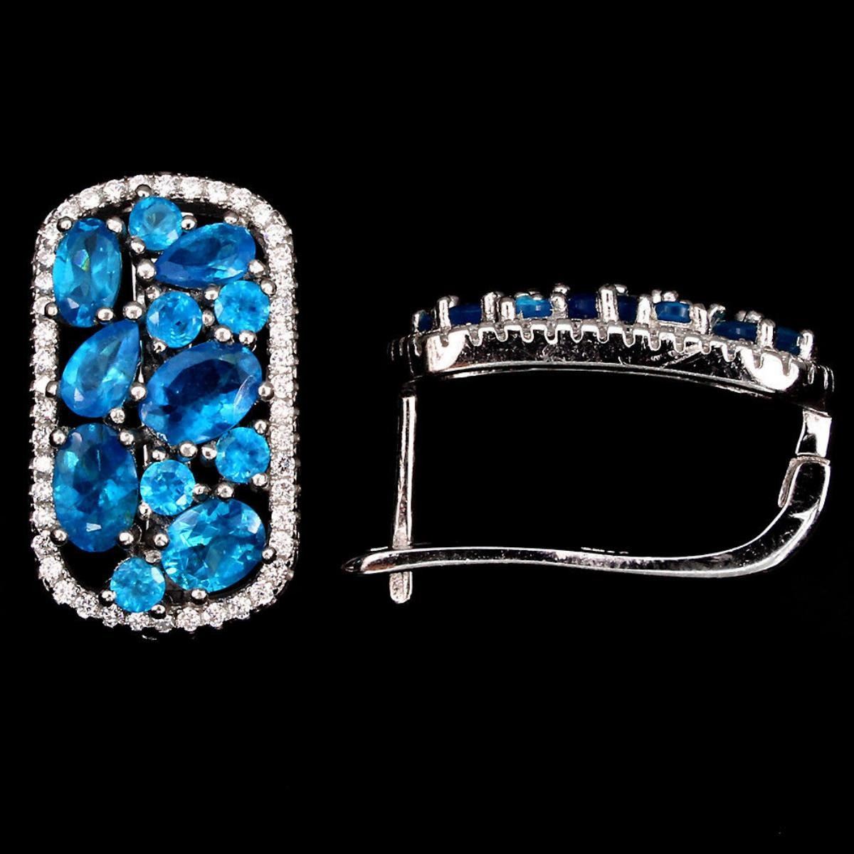 925 STERLING SILVER PLATE 14K WHITE GOLD RING SIZE/LENGTH (INCHES) MAIN STONE APATITE OTHER GEMS CUBIC ZIRCONIA TOTAL WEIGHT 41.99 CT (TOTAL WEIGHT OF SILVER + STONE) DIMENSION * STONE 2.5 TO 6.0 X 4.0 MM. * CZ 1.0 MM. * FACE EARRINGS 23.0 X 13.0 MM. MAIN STONE SHAPE OVAL CUT MAIN STONE COLOR TOP PARAIBA BLUE CLARITY/GRADE IF TO VVS ORIGIN -Brazil; HARDNESS 5.0