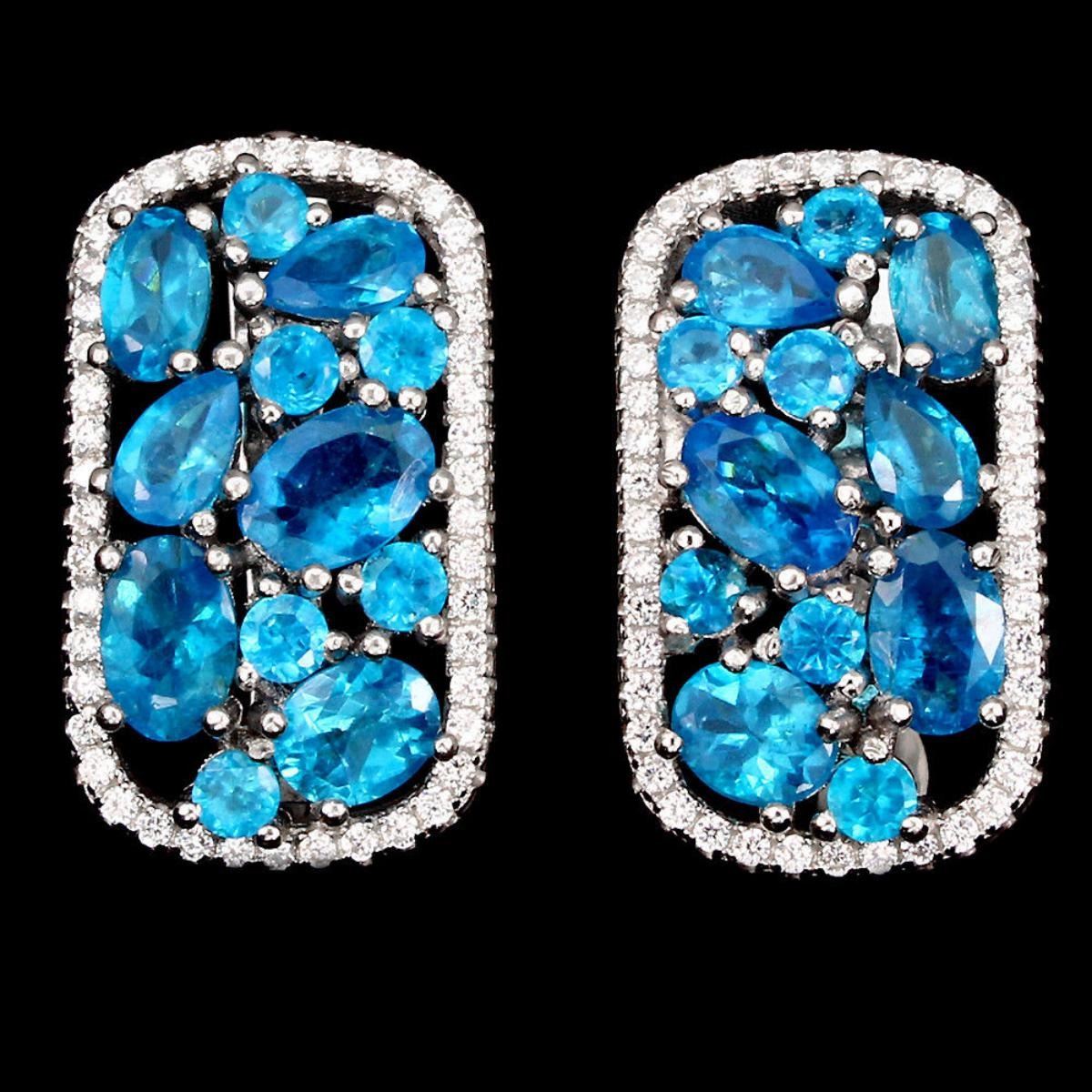 925 STERLING SILVER PLATE 14K WHITE GOLD RING SIZE/LENGTH (INCHES) MAIN STONE APATITE OTHER GEMS CUBIC ZIRCONIA TOTAL WEIGHT 41.99 CT (TOTAL WEIGHT OF SILVER + STONE) DIMENSION * STONE 2.5 TO 6.0 X 4.0 MM. * CZ 1.0 MM. * FACE EARRINGS 23.0 X 13.0 MM. MAIN STONE SHAPE OVAL CUT MAIN STONE COLOR TOP PARAIBA BLUE CLARITY/GRADE IF TO VVS ORIGIN -Brazil; HARDNESS 5.0