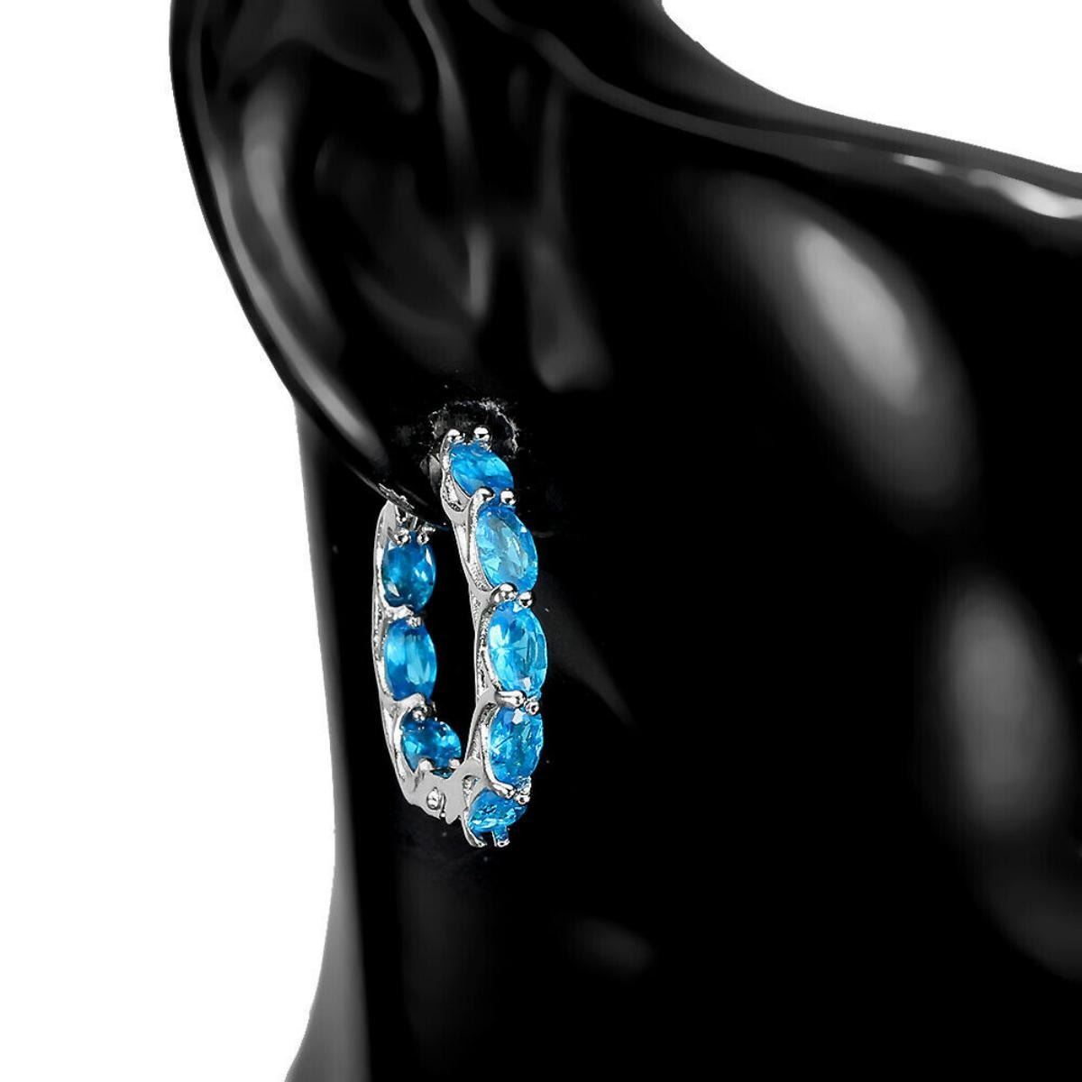 925 STERLING SILVER;PLATE-14K WHITE GOLD;MAIN STONE-APATITE;TOTAL WEIGHT-6.28 GRAM (TOTAL WEIGHT OF SILVER + STONE)DIMENSION-* STONE 5.0 X 3.0 MM. * FACE EARRINGS 24.0 X 3.0 MM.MAIN STONE SHAPE-OVAL CUT;MAIN STONE COLOR- NEON BLUE;CLARITY/GRADE-IF TO VVs;TREATMENT-UNHEATED;;ORIGIN-ABrazil;HARDNESS-5;
