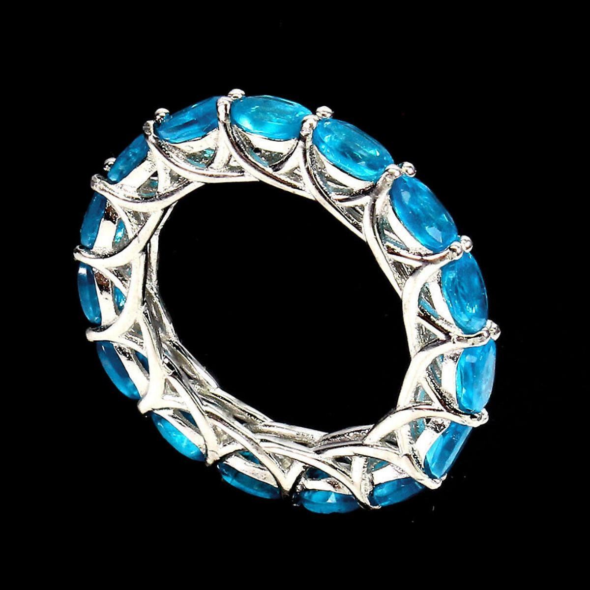 925 STERLING SILVER;PLATE-14K WHITE GOLD;RING SIZE-7.5;MAIN STONE-APATITE;TOTAL WEIGHT-4.16 GRAM (TOTAL WEIGHT OF SILVER + STONE);DIMENSION-* STONE 5.0 X 3.0 MM.* RING SIZE 7.5* FACE RING 28.0 X 3.0 MM.;MAIN STONE SHAPE-OVAL; MAIN STONE COLOR-PARAIBA BLUE;CLARITY/GRADE-IF TO VVS;TREATMENT-UNHEATED;ORIGIN-AFRICA;HARDNESS-5;