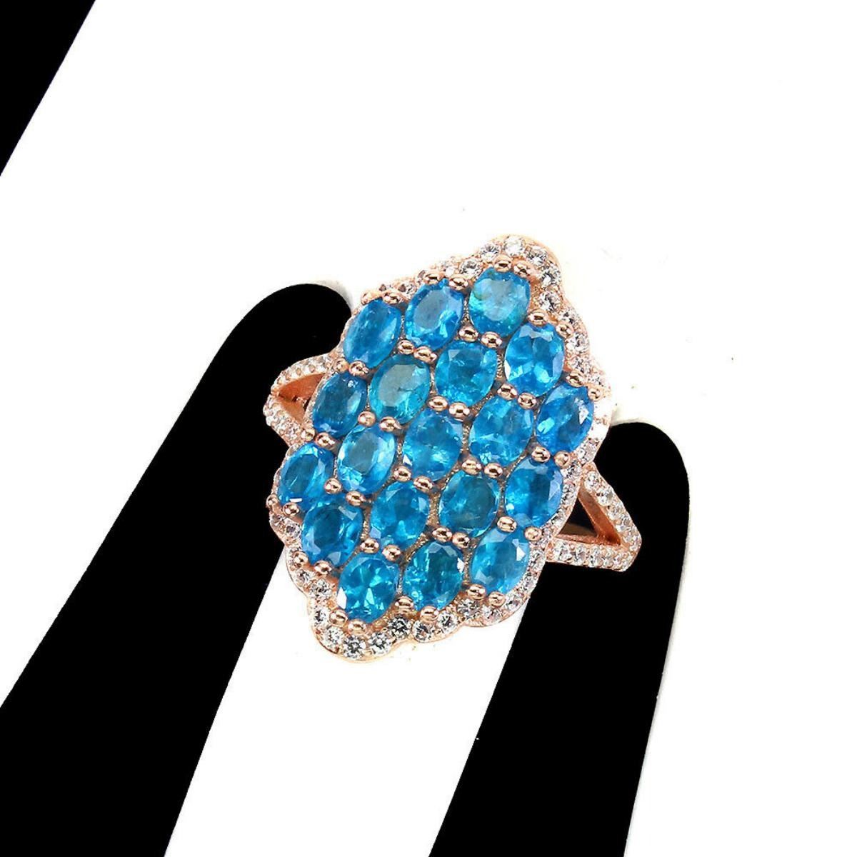 925 STERLING SILVER;PLATE-14K ROSE GOLD;RING SIZE-8(RESIZABLE);MAIN STONE-APATITE;TOTAL WEIGHT-4.98 GRAM (TOTAL WEIGHT OF SILVER + STONE);DIMENSION-* STONE 4.0 X 3.0 MM.* RING SIZE 8.0* FACE RING 24.0 X 22.0 MM.;MAIN STONE SHAPE-OVAL:MAIN STONE COLOR-PARAIBA BLUE;CLARITY/GRADE-IF TO VVS;TREATMENT-UNHEATED;ORIGIN-BRAZIL;HARDNESS-7.0 - 7.5;