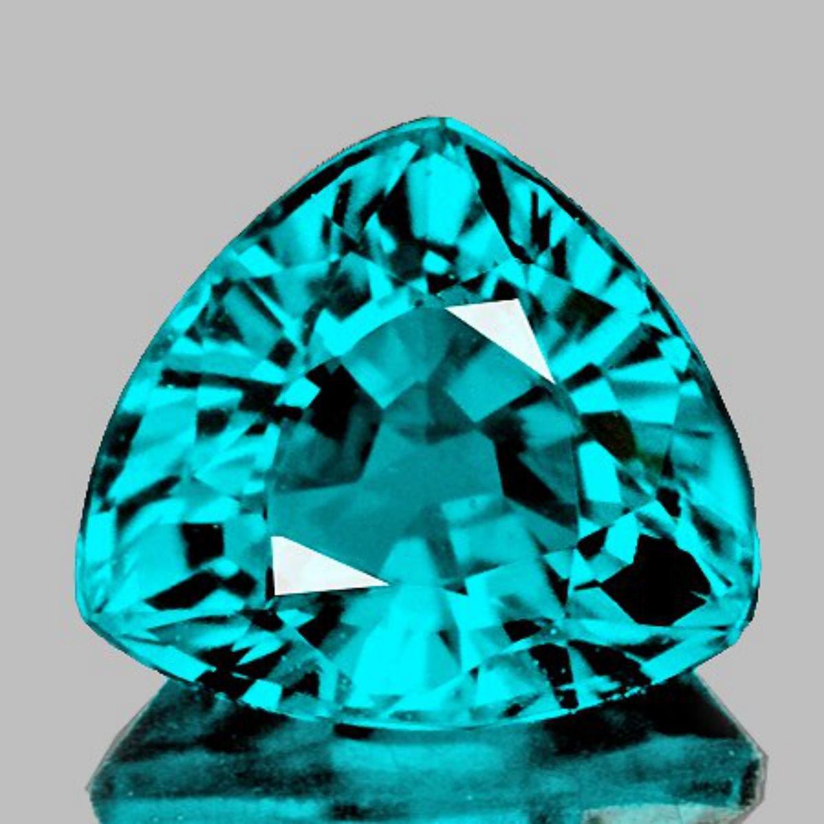 Natural Apatite; WEIGHT : 1.11 cts; SHAPE : Trillion; SIZE ( L x W x D ) : 5.60 x 6.50 x 4.59 mm; QUANTITY : 1 piece; COLOR : Intense Paraiba Blue; AAA Color; CLARITY : Flawless-VVS AAA Grade; ORIGIN : Brazil; HARDNESS : 5; LUSTER : Excellent!!! TREATMENT : 100% Natural Unheated;