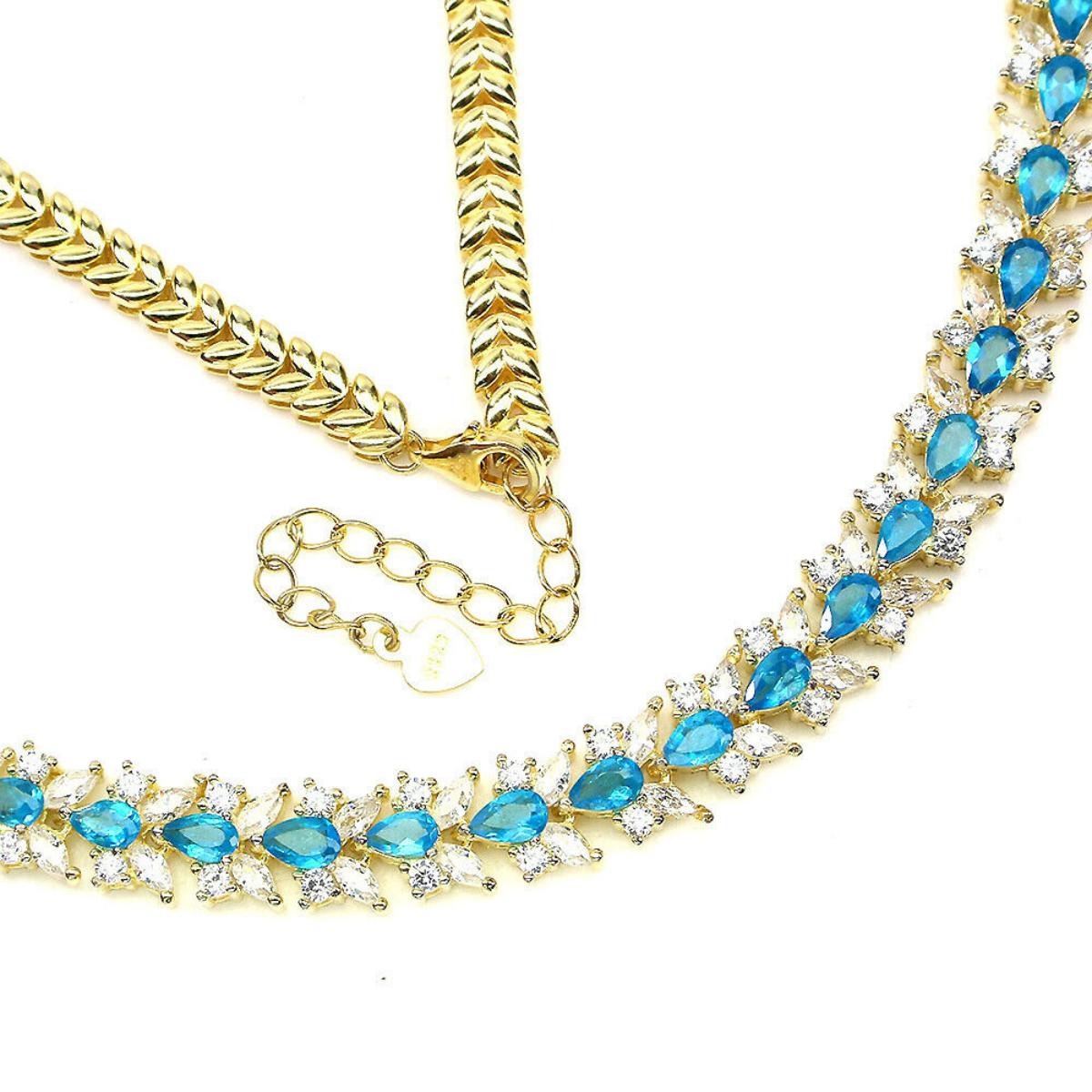 925 STERLING SILVER;PLATE-14K YELLOW GOLD;LENGTH (INCHES)17;MAIN STONE-APATITE;TOTAL WEIGHT-32.55 GRAM (TOTAL WEIGHT OF SILVER + STONE)DIMENSION-* STONE 5.0 X 3.0 MM. * CZ 2.0 TO 4.0 X 2.0 MM. * TOTAL LENGTH -17.0 INCHES. * STONES PART LENGTH 240.0 X 8.0 MM.MAIN STONE SHAPE-PEAR CUTMAIN STONE COLOR- NEON BLUE;CLARITY/GRADE-IF TO VVS;;TREATMENT-UNHEATED;ORIGIN-Brazil;HARDNESS-5;