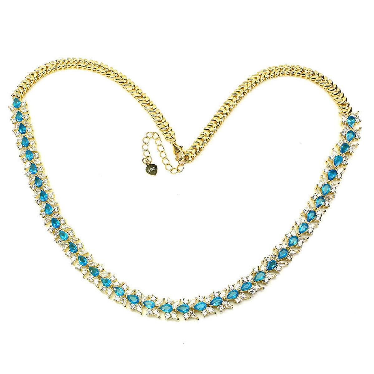 925 STERLING SILVER;PLATE-14K YELLOW GOLD;LENGTH (INCHES)17;MAIN STONE-APATITE;TOTAL WEIGHT-32.55 GRAM (TOTAL WEIGHT OF SILVER + STONE)DIMENSION-* STONE 5.0 X 3.0 MM. * CZ 2.0 TO 4.0 X 2.0 MM. * TOTAL LENGTH -17.0 INCHES. * STONES PART LENGTH 240.0 X 8.0 MM.MAIN STONE SHAPE-PEAR CUTMAIN STONE COLOR- NEON BLUE;CLARITY/GRADE-IF TO VVS;;TREATMENT-UNHEATED;ORIGIN-Brazil;HARDNESS-5;