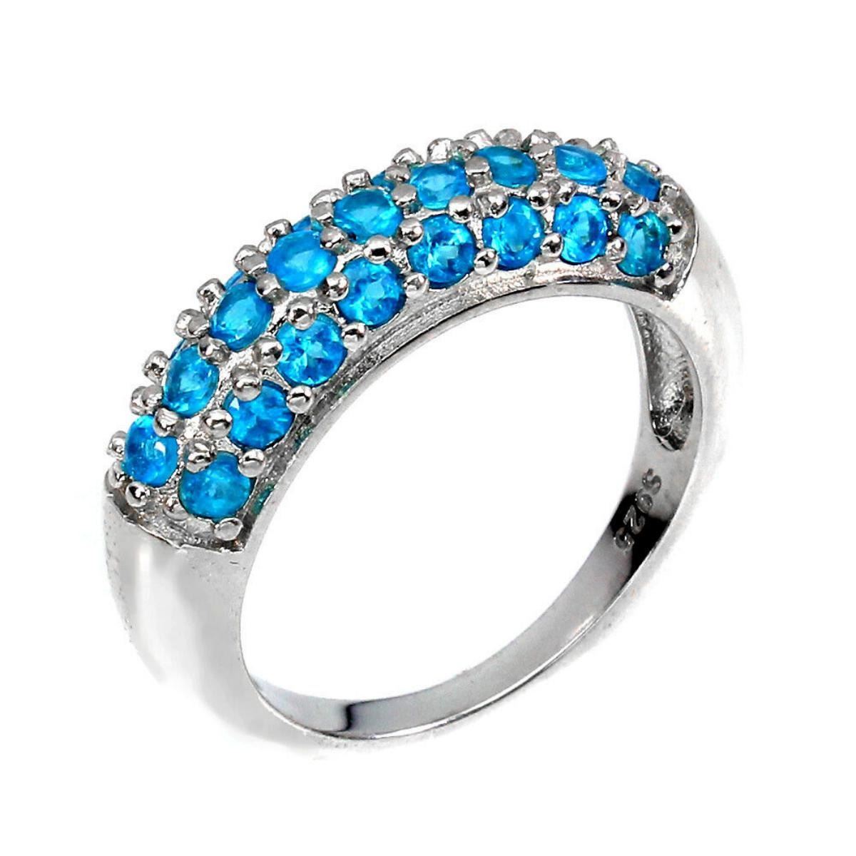 925 STERLING SILVER;PLATE-14K WHITE GOLD;RING SIZE/Resizeable-7;MAIN STONE-APATITE;TOTAL WEIGHT-4.26 GRAM (TOTAL WEIGHT OF SILVER + STONE)DIMENSION-* STONE 2.0 MM. * RING SIZE 7.0 * FACE RING 22.0 X 6.0 MM.;MAIN STONE SHAPE-ROUND CUT;MAIN STONE COLOR-TOP PARAIBA BLUE;CLARITY/GRADE-IF TO VVS;LUSTER-GORGEOUS;TREATMENT-UNHEATED;ORIGIN-AFRICA;HARDNESS-5;