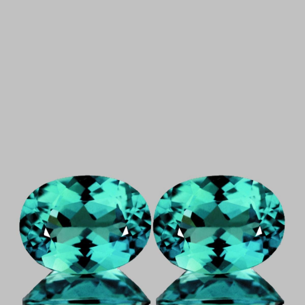 Natural Apatite; SHAPE : Oval (Portuguese Cut) SIZE ( L x W x D ) : 6.50 x 5.00 mm; QUANTITY : 2 pieces (Perfect Matching Pair) COLOR : Paraiba Green Blue; AAA Color; CLARITY :Flawless-VVS; AAA Grade ; ORIGIN : Madagascar; HARDNESS : 5; LUSTER : AAA Fire!! TREATMENT : 100% Natural Unheated;