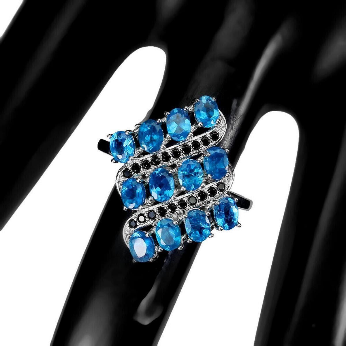 925 STERLING SILVER;PLATE14K WHITE GOLD;RING SIZE9(RESIZABLE);MAIN STONEAPATITE;OTHER GEMSBLACK SPINEL;TOTAL WEIGHT4.03 GRAM (TOTAL WEIGHT OF SILVER + STONE);DIMENSION* STONE 1.0 TO 4.0 X 3.0 MM. * RING SIZE 9.0 * FACE RING 23.0 X 20.0 MM.;MAIN STONE SHAPEOVAL;MAIN STONE COLORPARAIBA NEON BLUE;CLARITY/GRADEIF TO VVS;TREATMENTUNHEATED;ORIGINBRAZIL;HARDNESS5;