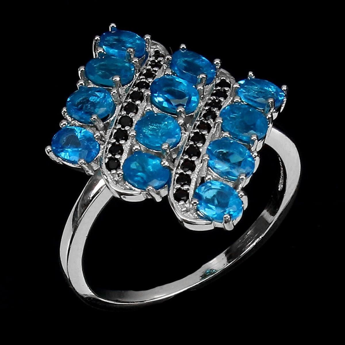 925 STERLING SILVER;PLATE14K WHITE GOLD;RING SIZE9(RESIZABLE);MAIN STONEAPATITE;OTHER GEMSBLACK SPINEL;TOTAL WEIGHT4.03 GRAM (TOTAL WEIGHT OF SILVER + STONE);DIMENSION* STONE 1.0 TO 4.0 X 3.0 MM. * RING SIZE 9.0 * FACE RING 23.0 X 20.0 MM.;MAIN STONE SHAPEOVAL;MAIN STONE COLORPARAIBA NEON BLUE;CLARITY/GRADEIF TO VVS;TREATMENTUNHEATED;ORIGINBRAZIL;HARDNESS5;