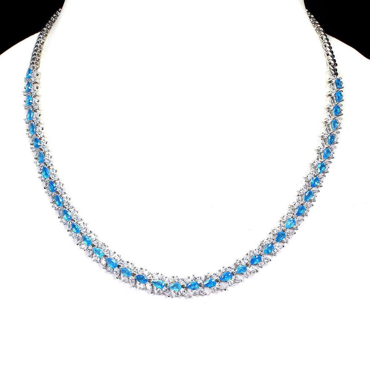 925 STERLING SILVER;PLATE-14K WHITE GOLD;LENGTH (INCHES)-17;MAIN STONE-APATITE;TOTAL WEIGHT-32.55 GRAM (TOTAL WEIGHT OF SILVER + STONE);DIMENSION-* STONE 5.0 X 3.0 MM.* TOTAL LENGTH 17.0 INCHES.* STONES PART LENGTH 240.0 X 8.0 MM.;MAIN STONE SHAPE-PEAR;MAIN STONE COLOR-NEON BLUE;CLARITY/GRADE-IF TO VVS;TREATMENT-UNHEATED;ORIGIN-AFRICA;HARDNESS-5;