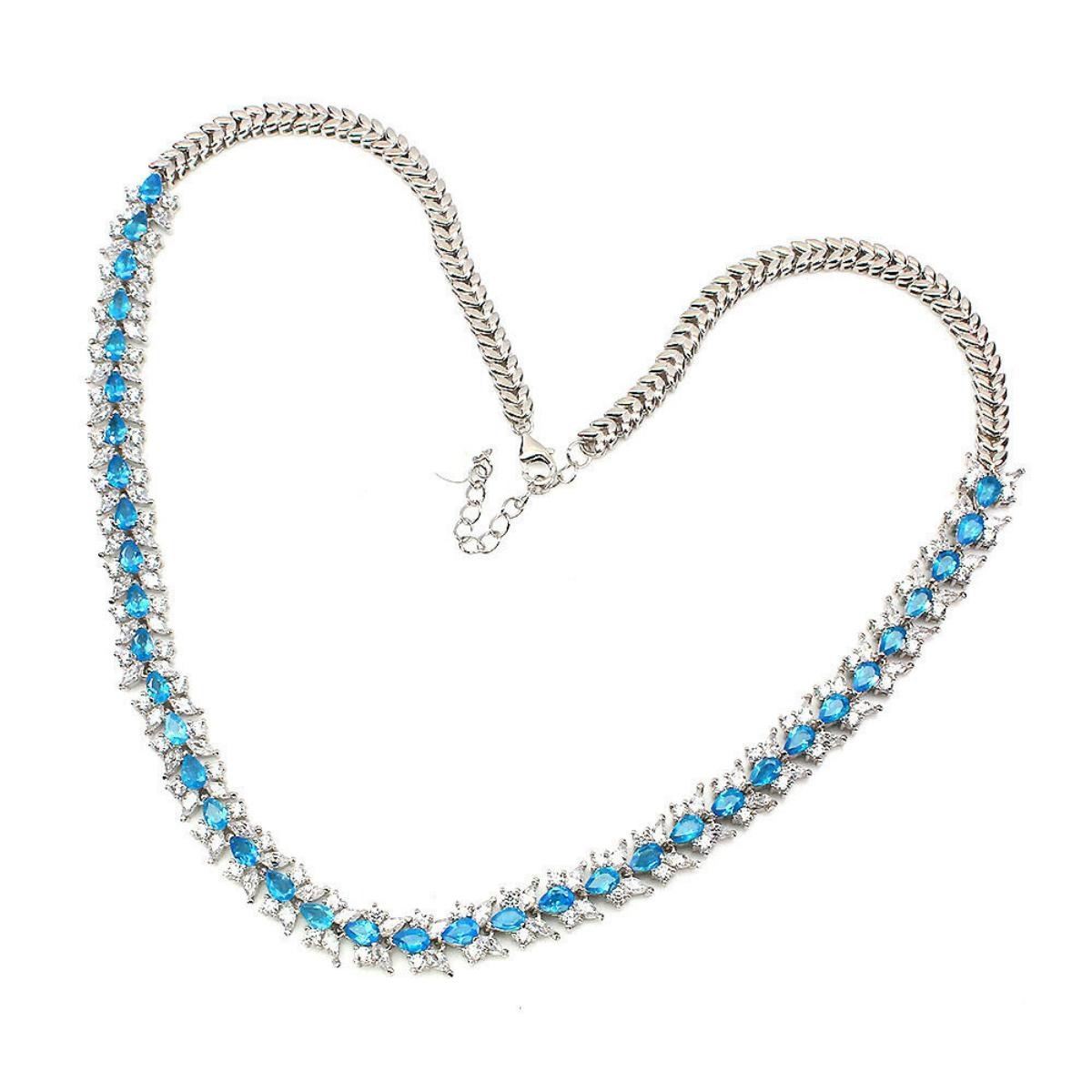 925 STERLING SILVER;PLATE-14K WHITE GOLD;LENGTH (INCHES)-17;MAIN STONE-APATITE;TOTAL WEIGHT-32.55 GRAM (TOTAL WEIGHT OF SILVER + STONE);DIMENSION-* STONE 5.0 X 3.0 MM.* TOTAL LENGTH 17.0 INCHES.* STONES PART LENGTH 240.0 X 8.0 MM.;MAIN STONE SHAPE-PEAR;MAIN STONE COLOR-NEON BLUE;CLARITY/GRADE-IF TO VVS;TREATMENT-UNHEATED;ORIGIN-AFRICA;HARDNESS-5;