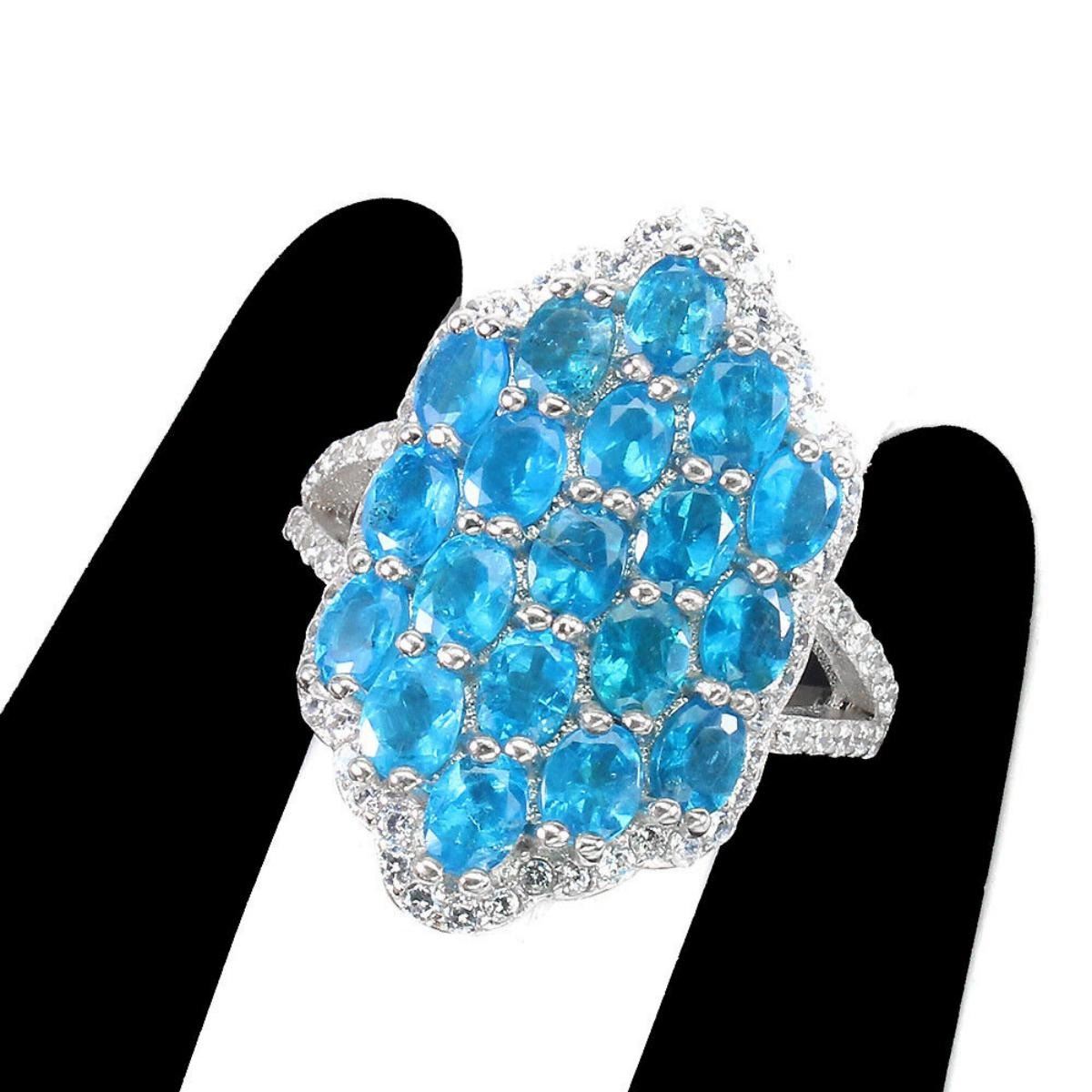 925 STERLING SILVER;PLATE-14K WHITE GOLD;RING SIZE-6.5(RESIZABLE);MAIN STONE-APATITE;TOTAL WEIGHT-4.98 GRAM (TOTAL WEIGHT OF SILVER + STONE);DIMENSION-* STONE 4.0 X 3.0 MM. * RING SIZE 6.5 * FACE RING 24.0 X 22.0 MM.;MAIN STONE SHAPE-OVAL ;MAIN STONE COLOR-PARAIBA NEON BLUE;CLARITY/GRADE-IF TO VVS;TREATMENT-UNHEATED;ORIGIN-BRAZIL;HARDNESS-7.0 - 7.5;
