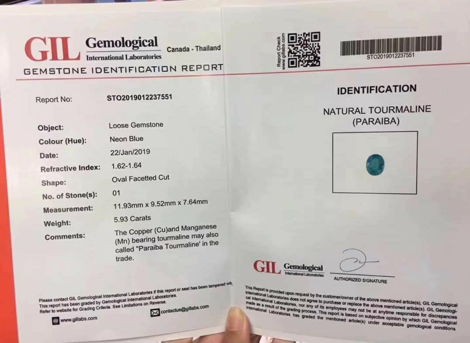 Natural Paraiba Tourmaline & Diamond Ring....18 K white gold 6.02 Grams....Ring Size 6.50 (Resizeable) ...Side stones - Natural diamonds 0.72 Cts ....G/VS.....& Natural Paraiba Tourmaline as side stones; Main stone - Natural Paraiba 5.93 Carats; Certified ;