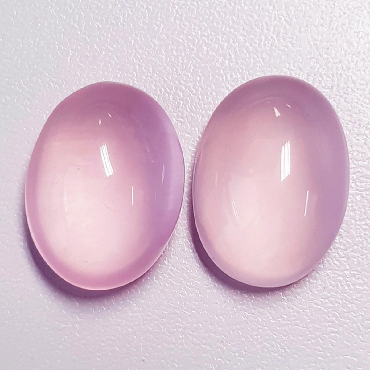Natural Rose Quartz (AAA Grade) TOTAL WEIGHT : 40.88cts SHAPE : Oval Cabochon SIZE ( L x W x D ) : 21.00 x 15.00 mm QUANTITY : 2 pieces (Perfect Matching Pair) COLOR : Pastel Pink AAA COLOR CLARITY : Flawless-VVS (Highly Transparent) ORIGIN : Brazil HARDNESS : 7 LUSTER : Excellent Polish & Beautiful Luster TREATMENT : 100% Natural Unheated