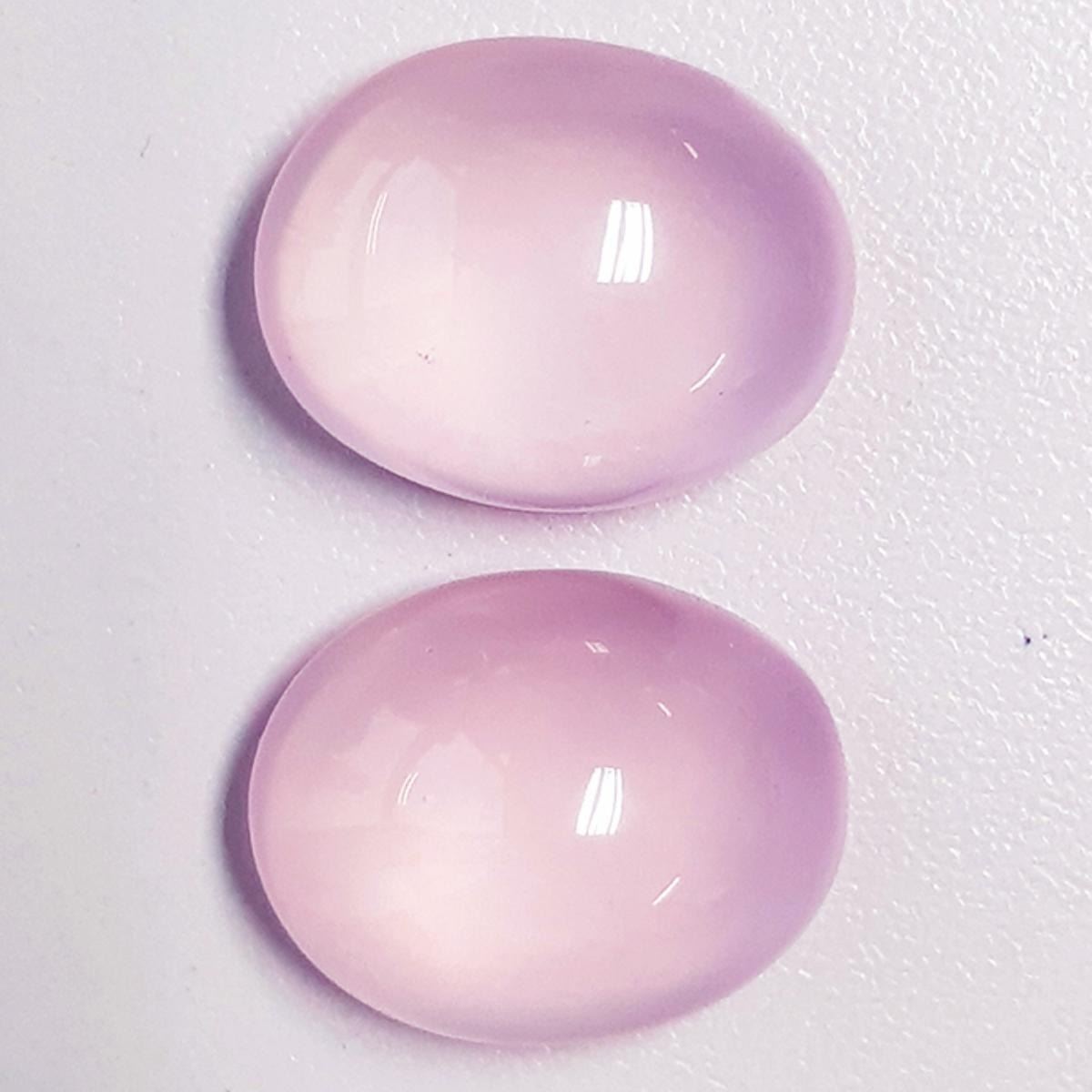 Natural Rose Quartz (AAA Grade) TOTAL WEIGHT : 40.95cts SHAPE : Oval Cabochon SIZE ( L x W x D ) : 20.00 x 16.00 mm QUANTITY : 2 pieces (Perfect Matching Pair) COLOR : Pastel Pink AAA COLOR CLARITY : Flawless-VVS (Highly Transparent) ORIGIN : Brazil HARDNESS : 7 LUSTER : Excellent Polish & Beautiful Luster TREATMENT : 100% Natural Unheated