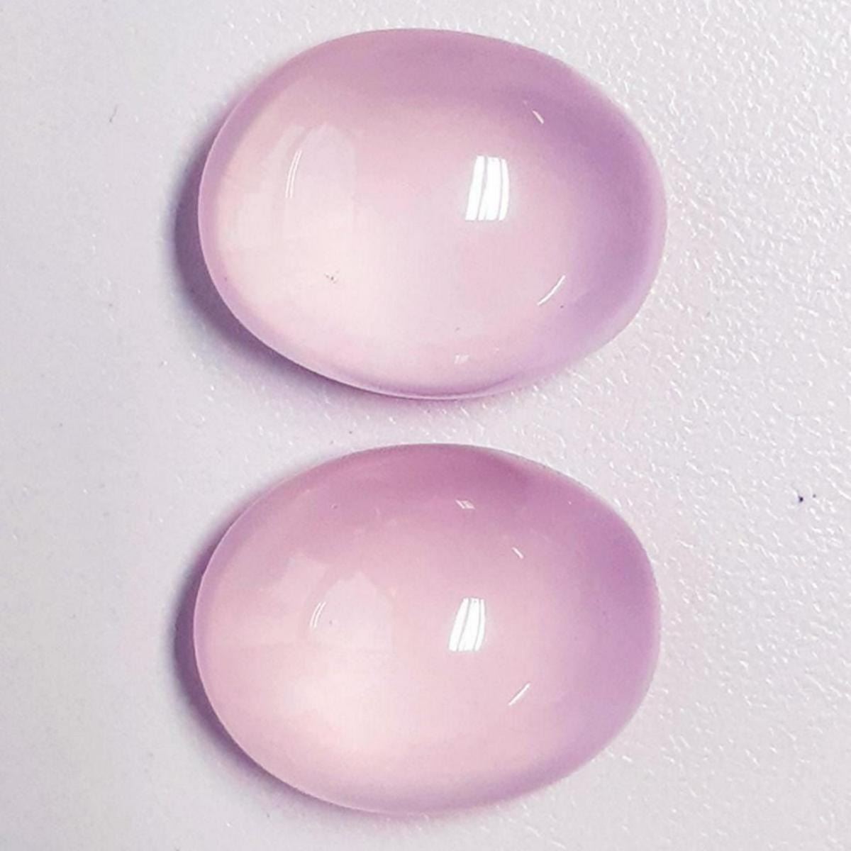 Natural Rose Quartz (AAA Grade) TOTAL WEIGHT : 40.95cts SHAPE : Oval Cabochon SIZE ( L x W x D ) : 20.00 x 16.00 mm QUANTITY : 2 pieces (Perfect Matching Pair) COLOR : Pastel Pink AAA COLOR CLARITY : Flawless-VVS (Highly Transparent) ORIGIN : Brazil HARDNESS : 7 LUSTER : Excellent Polish & Beautiful Luster TREATMENT : 100% Natural Unheated