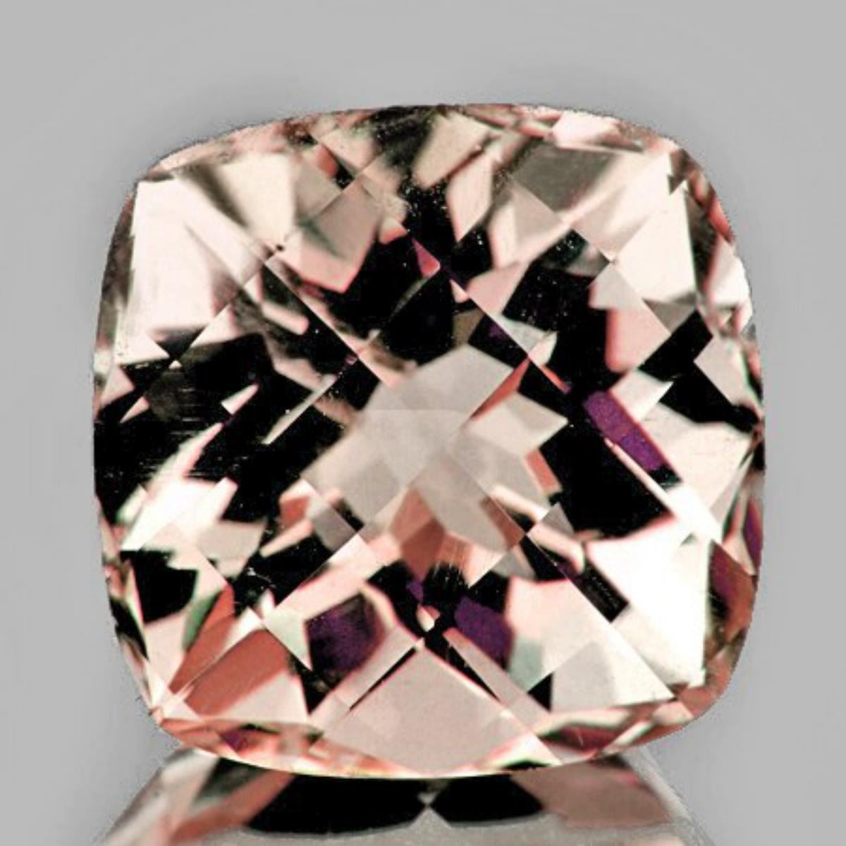 Natural Morganite; WEIGHT : 1.36 cts SHAPE : Cushion Checker; SIZE ( L x W x D ) : 7.11 x 4.64 mm; QUANTITY : 1 piece; COLOR : Peach Pink ; CLARITY : Flawless-VVS; ORIGIN : Brazil; HARDNESS : 8; LUSTER : AAA Fire!! TREATMENT : Unheated 100% NATURAL;
