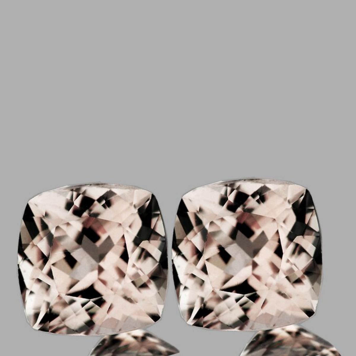 Natural Morganite; SHAPE : Cushion; SIZE ( L x W x D ) : 6.00 mm; QUANTITY : 2 pieces (Perfect Matching Pair) COLOR : Peach Pink ; CLARITY : Flawless-VVS; ORIGIN : Brazil; HARDNESS : 8; LUSTER : AAA Fire!! TREATMENT : Unheated 100% NATURAL