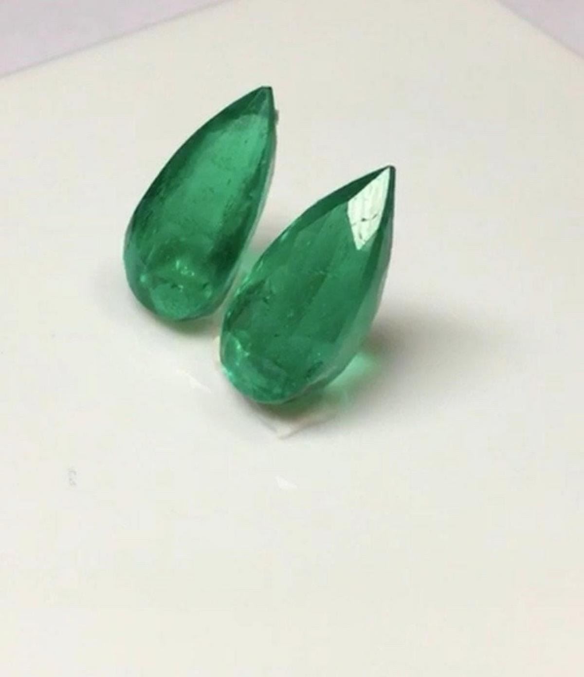 Natural Pear Colombian Emerald Pair - GRS Certfied ...Top color and clarity....extremely rare colombian emerald pair to find in this carat weight.....Origin - Colombia...emeralds details are on the certificate. Feel free to contact us for more information.