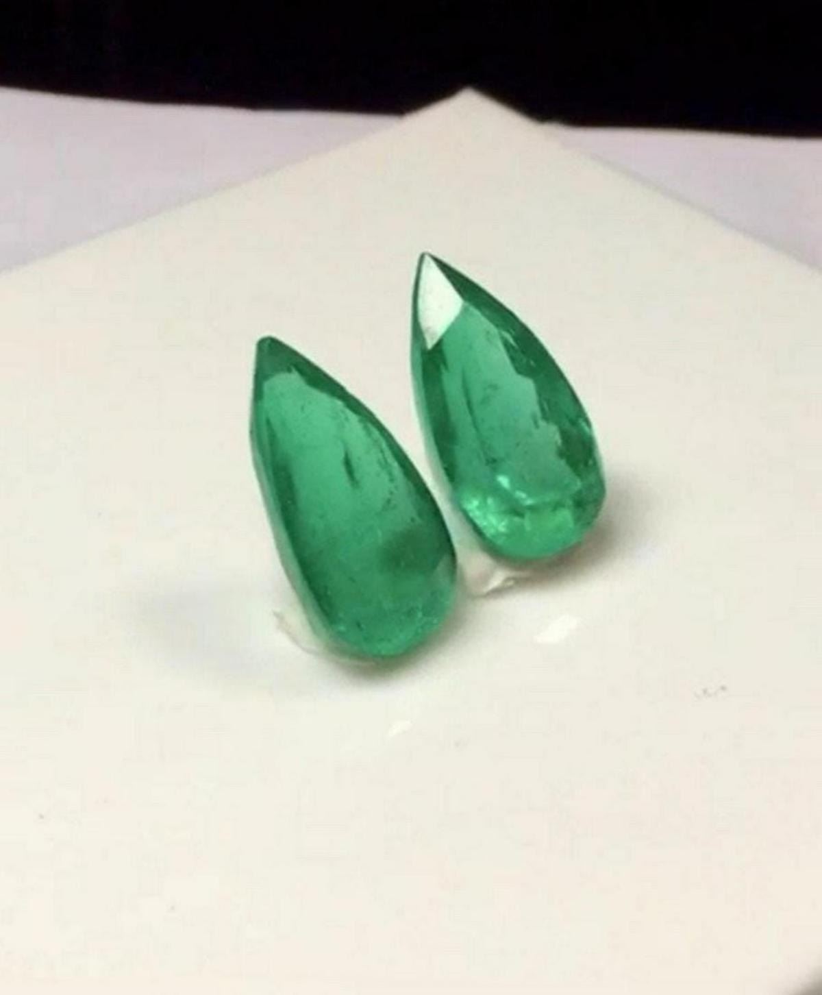 Natural Pear Colombian Emerald Pair - GRS Certfied ...Top color and clarity....extremely rare colombian emerald pair to find in this carat weight.....Origin - Colombia...emeralds details are on the certificate. Feel free to contact us for more information.