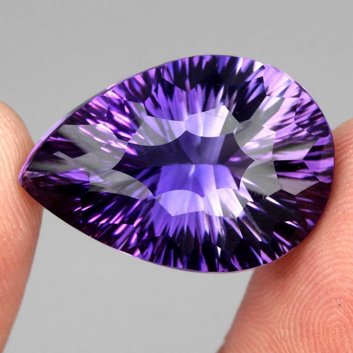 TOTAL WEIGHT-24.48 CT;DIMENSION-25.0 X 17.0 X 11.0 MM.;MAIN STONE SHAPE-PEAR CONCAVE CUT;MAIN STONE COLOR-TOP RICH PURPLE;CLARITY/GRADE-IF;TREATMENT-UNHEATED;ORIGIN-URUGUAY;HARDNESS-7;