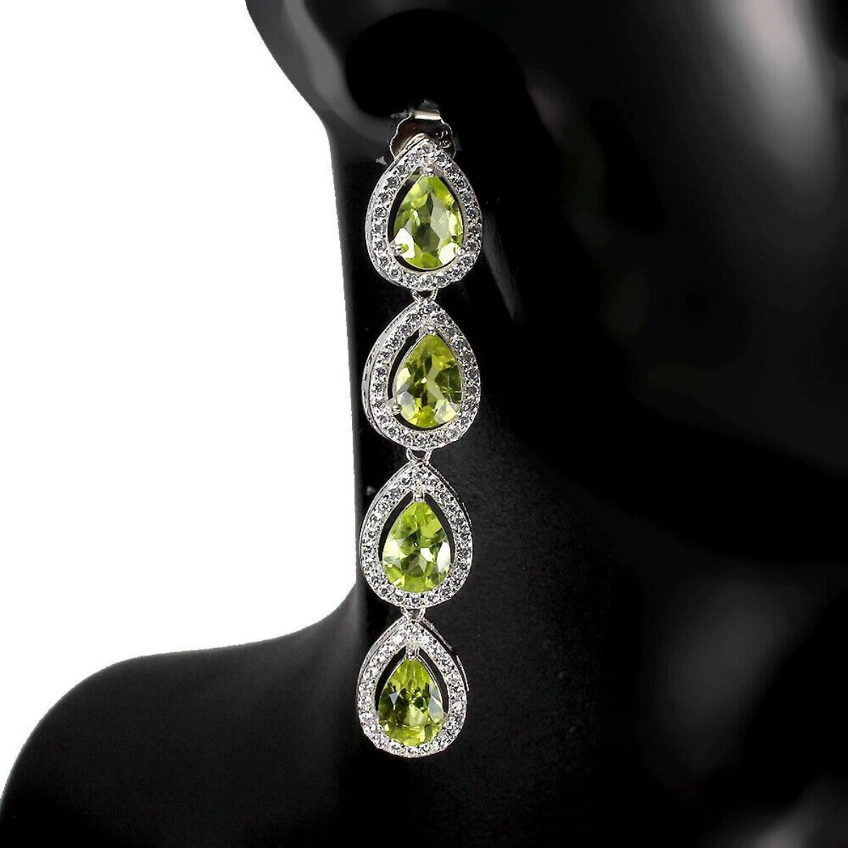 925 STERLING SILVER;PLATE-14K WHITE GOLD;MAIN STONE-PERIDOT;TOTAL WEIGHT-6.66 GRAM (TOTAL WEIGHT OF SILVER + STONE)DIMENSION-* STONE 7.0 X 5.0 MM.;* FACE EARRINGS- 47.0 X 9.0 MM.;MAIN STONE SHAPE-PEAR CUT;MAIN STONE COLOR- RICH GREEN;CLARITY/GRADE-IF TO VVS;TREATMENT-UNHEATED;ORIGIN-PAKISTAN;HARDNESS-6.5 - 7.0;