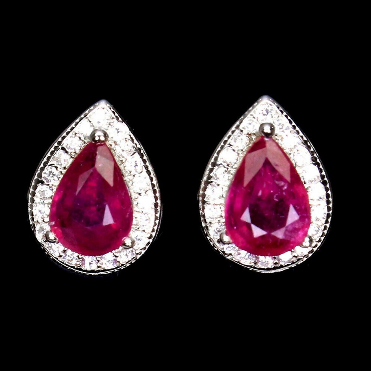 925 STERLING SILVER;PLATE-14K WHITE GOLD;MAIN STONE-RUBY;TOTAL WEIGHT-2.55 GRAM (TOTAL WEIGHT OF SILVER + STONE)DIMENSION-* STONE 7.0 X 5.0 MM. * CZ 1.0 MM. * FACE EARRINGS 10.0 X 8.0 MM.;MAIN STONE SHAPE-PEAR CUT;MAIN STONE COLOR-TOP RICH RED PINK;TREATMENT-_ yes;ORIGIN-MOZAMBIQUE;HARDNESS-9;
