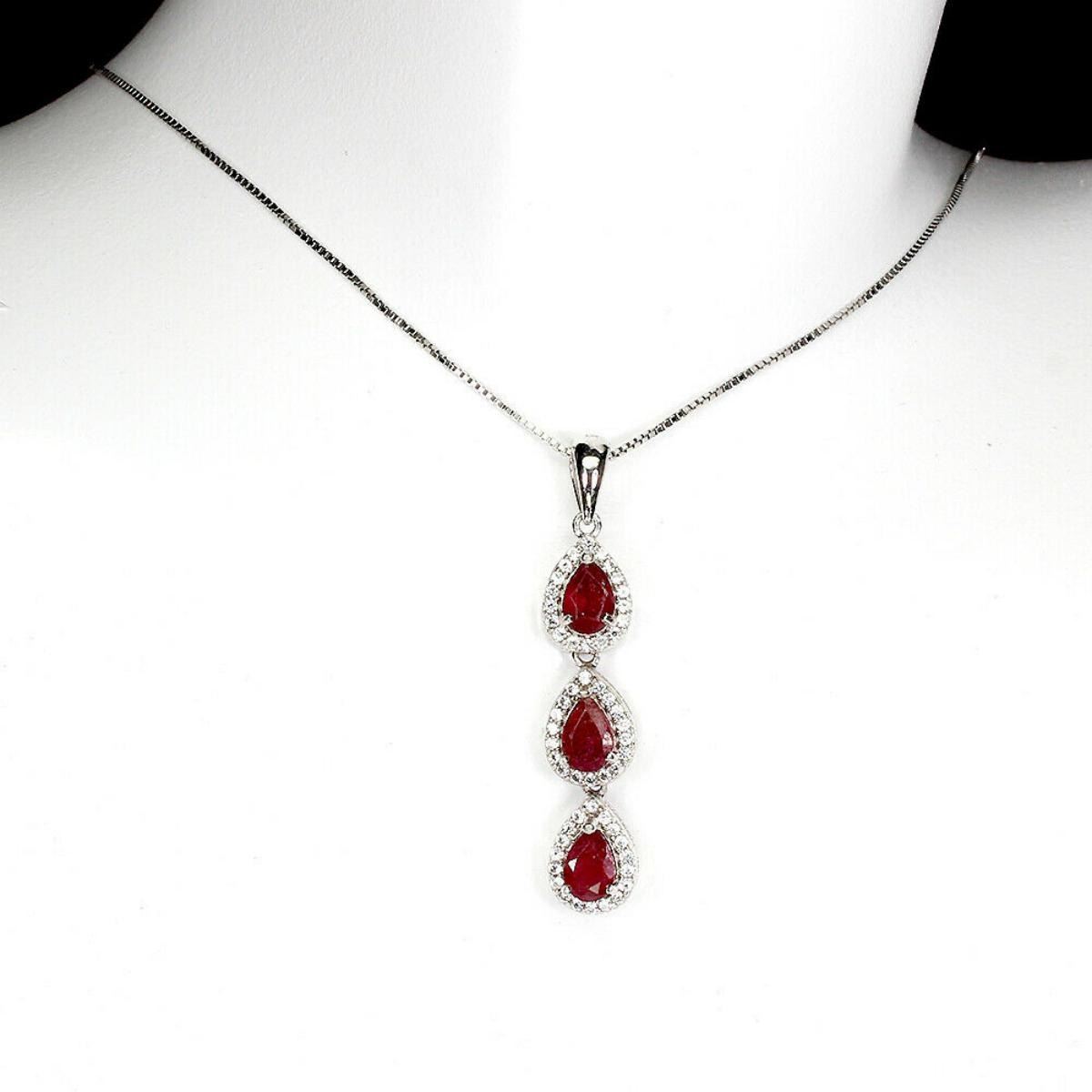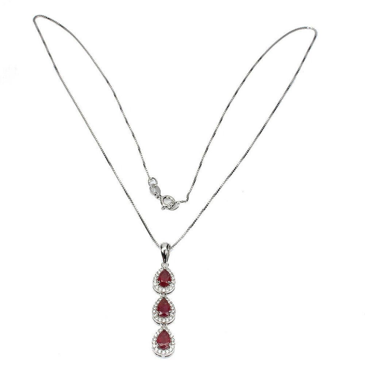 925 STERLING SILVER;PLATE14K WHITE GOLD;LENGTH (INCHES)18;MAIN STONE-RUBY;TOTAL WEIGHT-3.74 GRAM (TOTAL WEIGHT OF SILVER + STONE)DIMENSION-* STONE 6.0 X 4.0 MM. * CZ 1.0 MM. * TOTAL LENGTH 18.0 INCHES. * STONES PART LENGTH 37.0 X 7.0 MM.;MAIN STONE SHAPE-PEAR CUT;MAIN STONE COLOR-TOP BLOOD RED;TREATMENT-- Yes;ORIGIN-MADAGASCAR;HARDNESS-9.0;