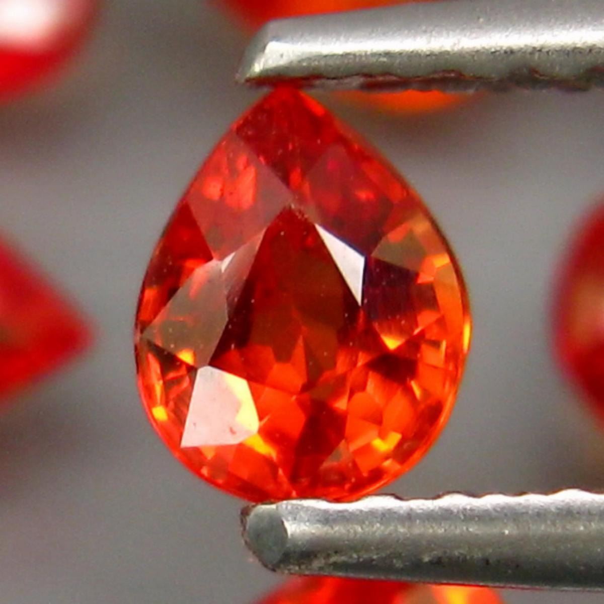 Natural Sapphire.........SHAPE :Pear Shape;WEIGHT :4.20 Ct.;SIZE :5 X 4 Mm.;QUANTITY :12 Pieces;COLOR :Orange;CLARITY :Vs Si;LUSTER :Superior;ORIGIN :Africa;TREATMENT :Heated;HARDNESS :9