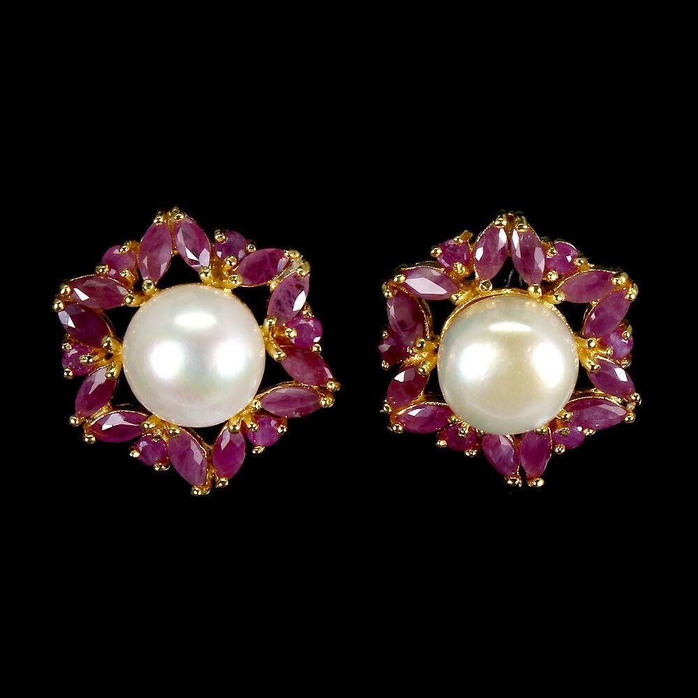 925 STERLING SILVER;PLATE-14K YELLOW GOLD;MAIN STONE-RUBY;OTHER GEMS-PEARL;TOTAL WEIGHT-10.12 GRAM (TOTAL WEIGHT OF SILVER + STONE)DIMENSION* STONE 2.5 TO 5.0 X 2.5 MM. * PEARL 11.0 MM. * FACE EARRINGS 23.0 X 20.0 MM.;MAIN STONE SHAPE-MARQUISE CUT;MAIN STONE COLOR-TOP RICH RED PINK;ORIGIN- Mozambique & Japan;HARDNESS2.5 - 9.0;