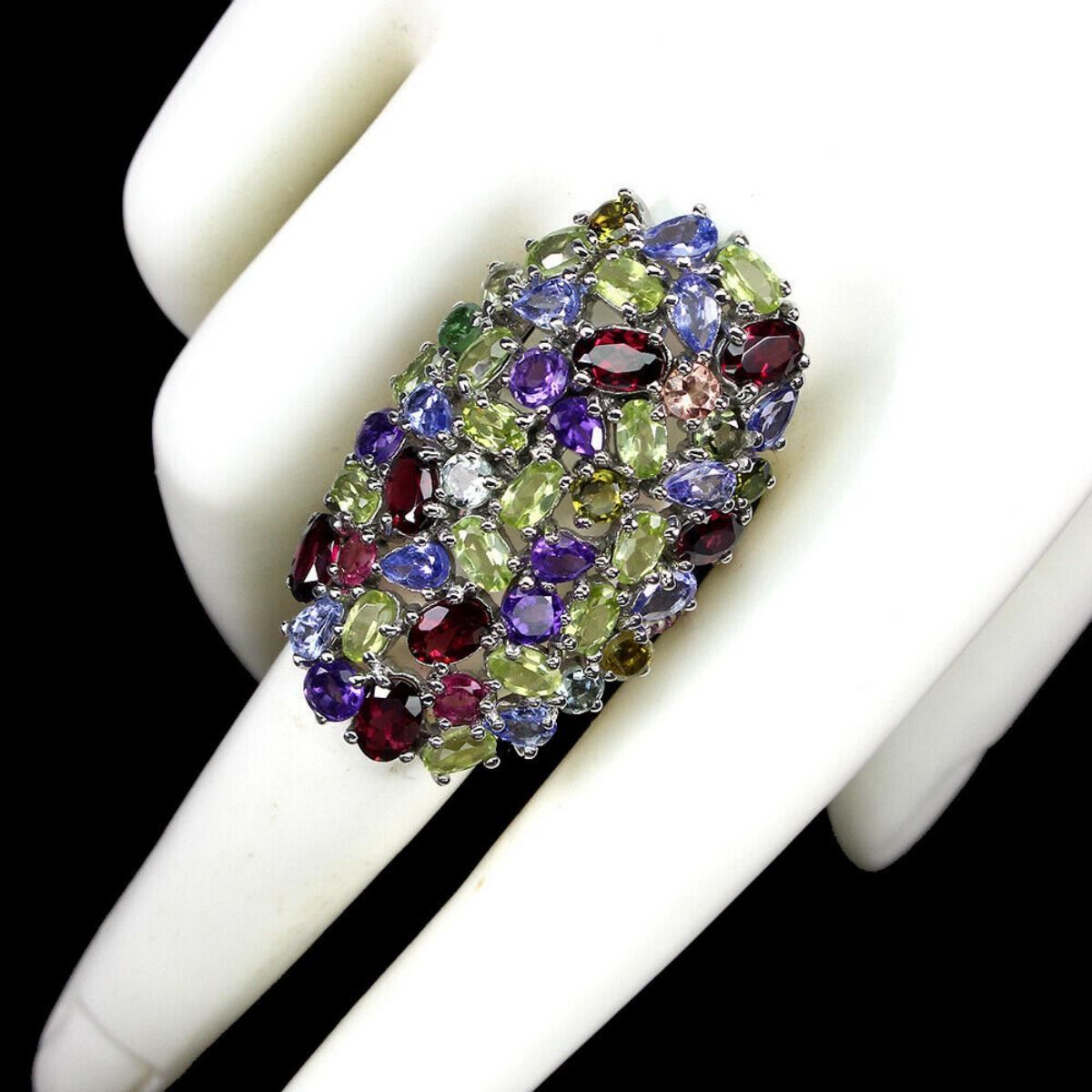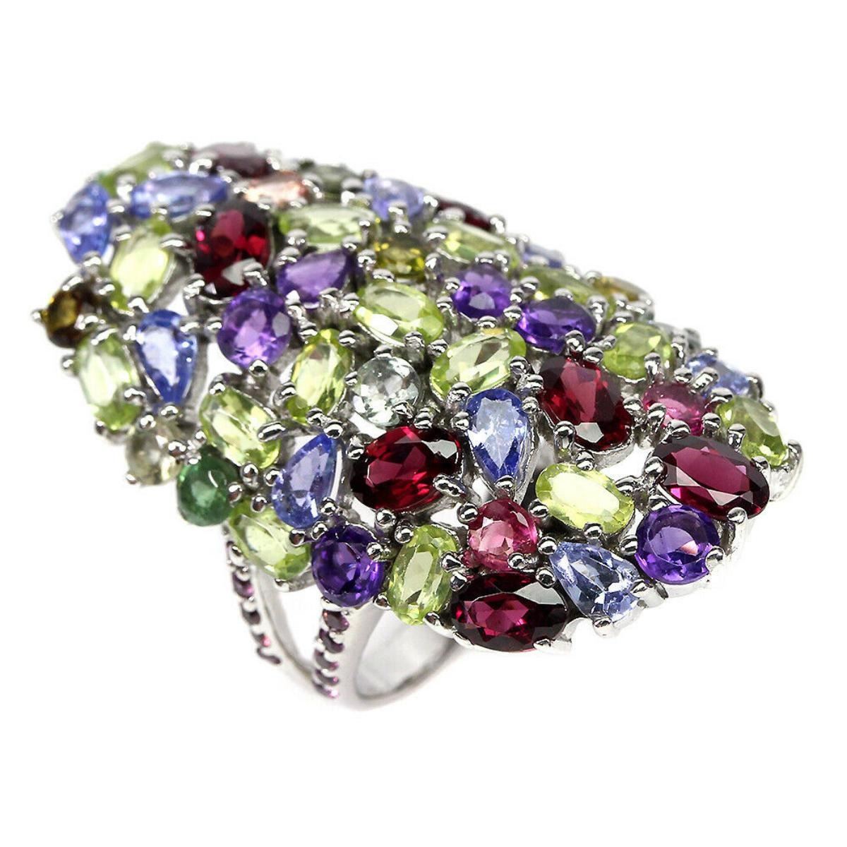 925 STERLING SILVER;PLATE-14K WHITE GOLD;RING SIZE/Resizeable-10;MAIN STONE-PERIDOT;OTHER GEMS-AMETHYST, RHODOLITE GARNET, TANZANITE, TOURMALINE;TOTAL WEIGHT-13.77 GRAM (TOTAL WEIGHT OF SILVER + STONE)DIMENSION-* STONE 1.5 TO 6.0 X 4.0 MM.;** FACE RING- 43.0 X 25.0 MM.;;MAIN STONE SHAPE-OVAL CUT;CLARITY/GRADE-IF;TREATMENT-UNHEATED;HARDNESS-6.5 - 7.0;