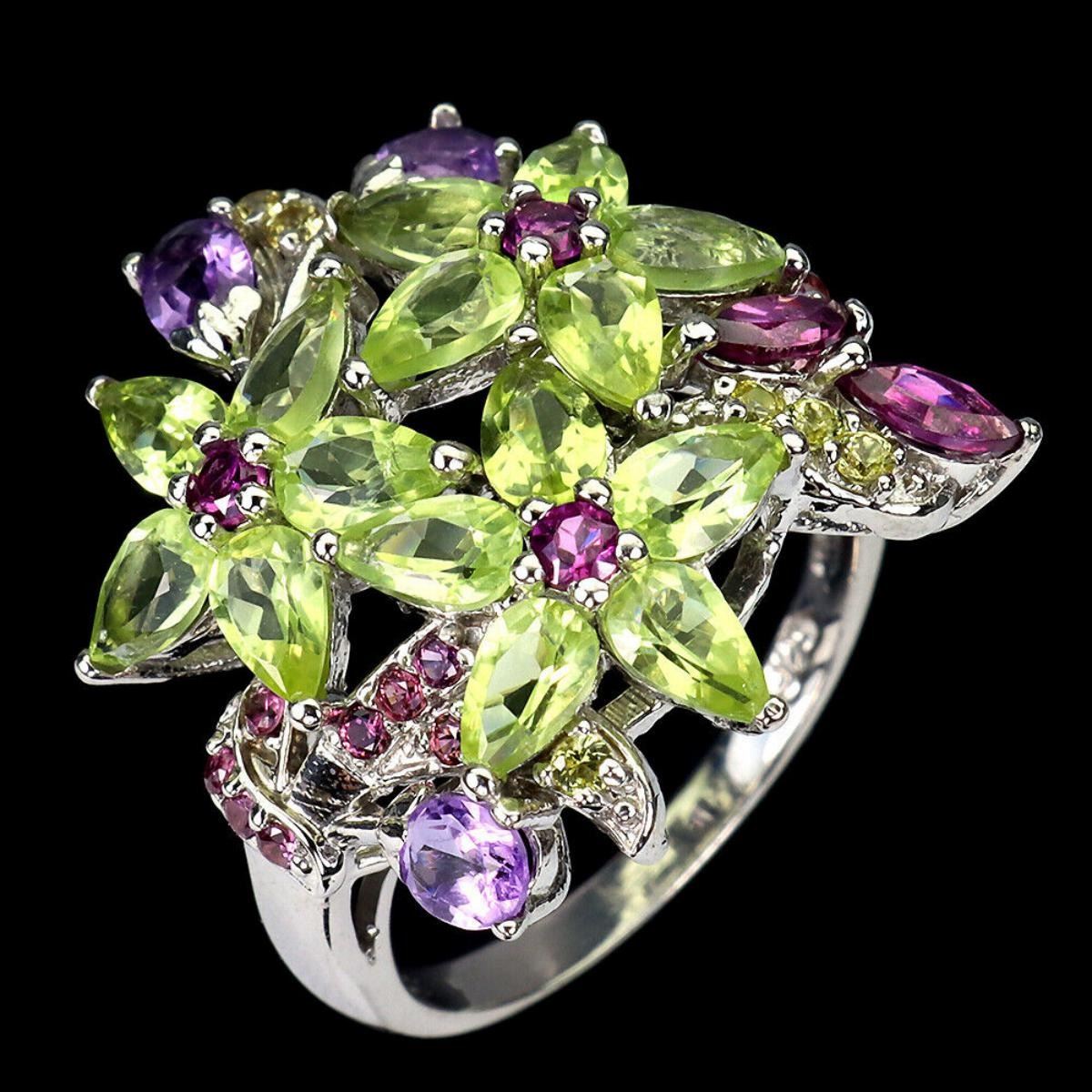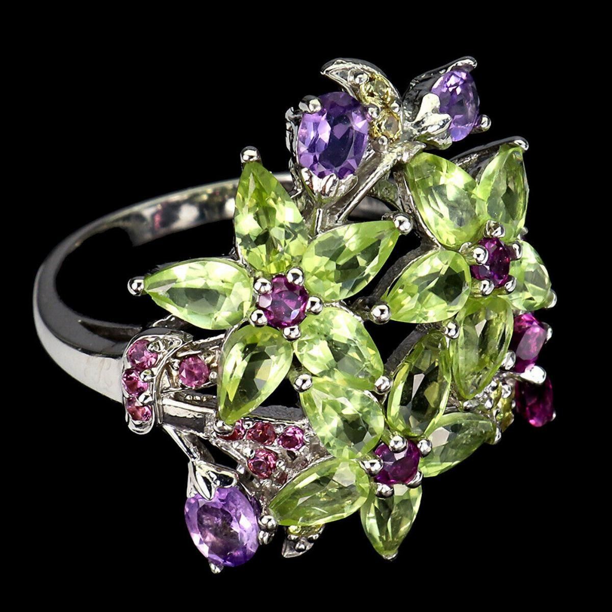 925 STERLING SILVER;PLATE-14K WHITE GOLD;RING SIZE/resizable-8;MAIN STONE-PERIDOT;OTHER GEMS-AMETHYST, SAPPHIRE;TOTAL WEIGHT-5.72 GRAM (TOTAL WEIGHT OF SILVER + STONE)DIMENSION-* STONE 1.0 TO 5.0 X 3.0 MM.;* RING SIZE- 8.0;* FACE RING- 23.0 X 21.0 MM.;MAIN STONE SHAPE-PEAR CUT;MAIN STONE COLOR-RICH GREEN;CLARITY/GRADE-IF TO VVS;TREATMENT-UNHEATED;ORIGIN-PAKISTAN;HARDNESS-6.5 - 7.0;