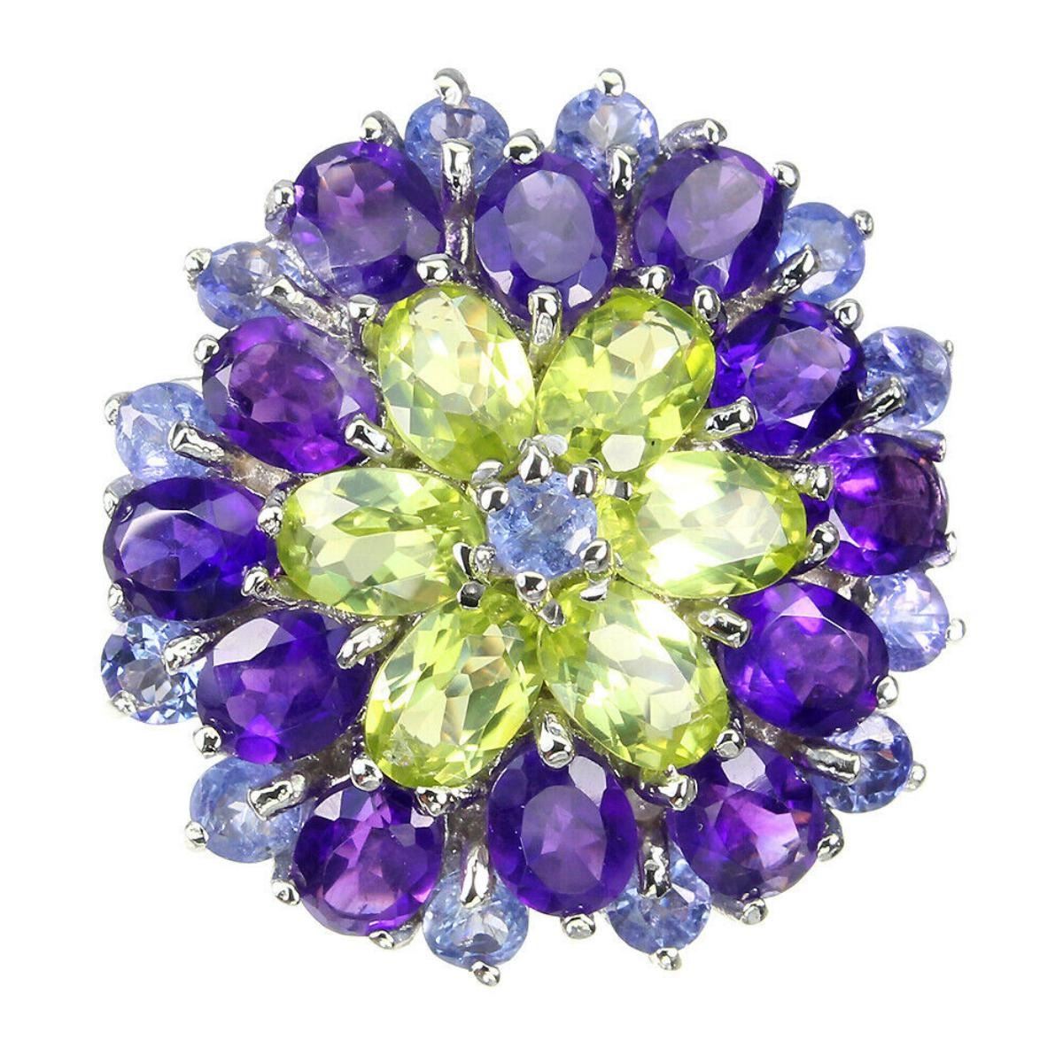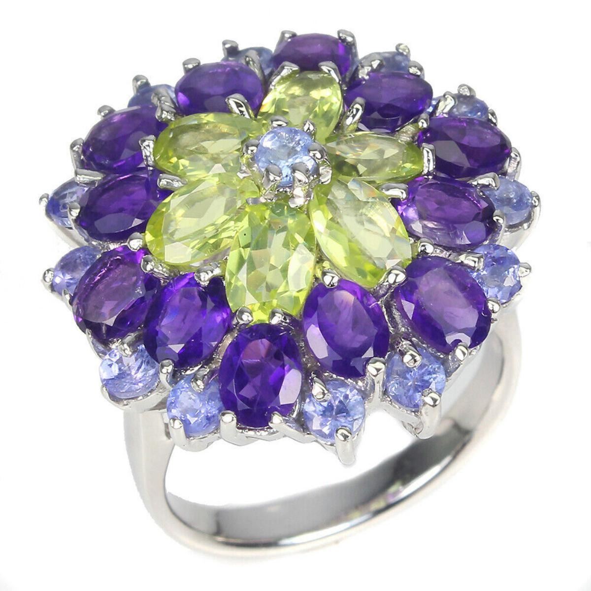 925 STERLING SILVER;PLATE14K WHITE GOLD;RING SIZE/LENGTH (INCHES)9;MAIN STONEPERIDOT;OTHER GEMSAMETHYST, TANZANITE;TOTAL WEIGHT10.83 GRAM (TOTAL WEIGHT OF SILVER + STONE)DIMENSION* STONE 3.0 TO 6.0 X 4.0 MM.;* FACE RING 26.0 X 24.0 MM.;MAIN STONE SHAPEOVAL CUTMAIN STONE COLORTOP RICH GREENCLARITY/GRADEIF TO VVSLUSTERPRECIOUSTREATMENTUNHEATEDORIGINPAKISTANHARDNESS6.5 - 7.0