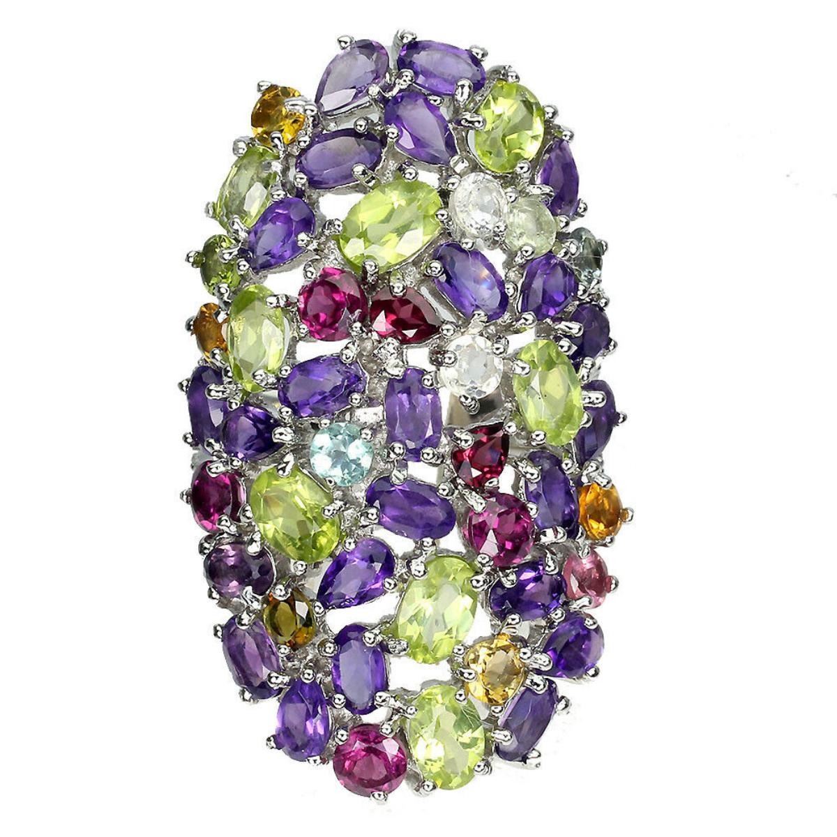 925 STERLING SILVER;PLATE-14K WHITE GOLD;RING SIZE-9(RESIZABLE);MAIN STONE-PERIDOT;OTHER GEMS-AMETHYST, RHODOLITE GARNET, TOURMALINE;TOTAL WEIGHT-12.81 GRAM (TOTAL WEIGHT OF SILVER + STONE);DIMENSION-* STONE 1.5 TO 6.0 X 4.0 MM.* RING SIZE 9.0* FACE RING 42.0 X 25.0 MM.;MAIN STONE SHAPE-OVAL ;MAIN STONE COLORGREEN;CLARITY/GRADE-IF TO VVS;TREATMENT-UNHEATED;ORIGIN-PAKISTAN;HARDNESS-6.5 - 7.0;