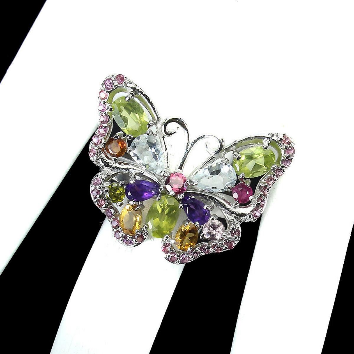 925 STERLING SILVER;PLATE-14K WHITE GOLD;RING SIZE-9(RESIZABLE);MAIN STONE-PERIDOT;OTHER GEMS-AMETHYST, AQUAMARINE, CITRINE, RHODOLITE GARNET;TOTAL WEIGHT-7.15 GRAM (TOTAL WEIGHT OF SILVER + STONE);DIMENSION-* STONE 1.5 TO 6.0 X 4.0 MM.* RING SIZE 9.0* FACE RING 28.0 X 22.0 MM.;MAIN STONE SHAPE-OVAL;MAIN STONE COLOR-GREEN;CLARITY/GRADE-IF TO VVS;TREATMENT-UNHEATED;ORIGIN-PAKISTAN;HARDNESS-6.5 - 7.0;